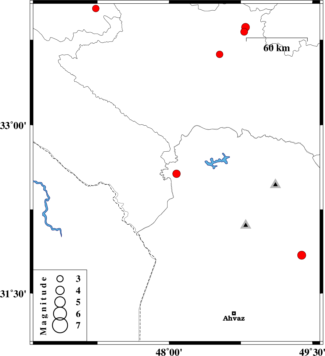 | 2021/12/23 | 13:28:40.4 | 16:58:40.4 | 32.568 | 48.077 | 12 | ML:3.7 | Khoozestan Province, 28 km North-West of Andimeshk | ||