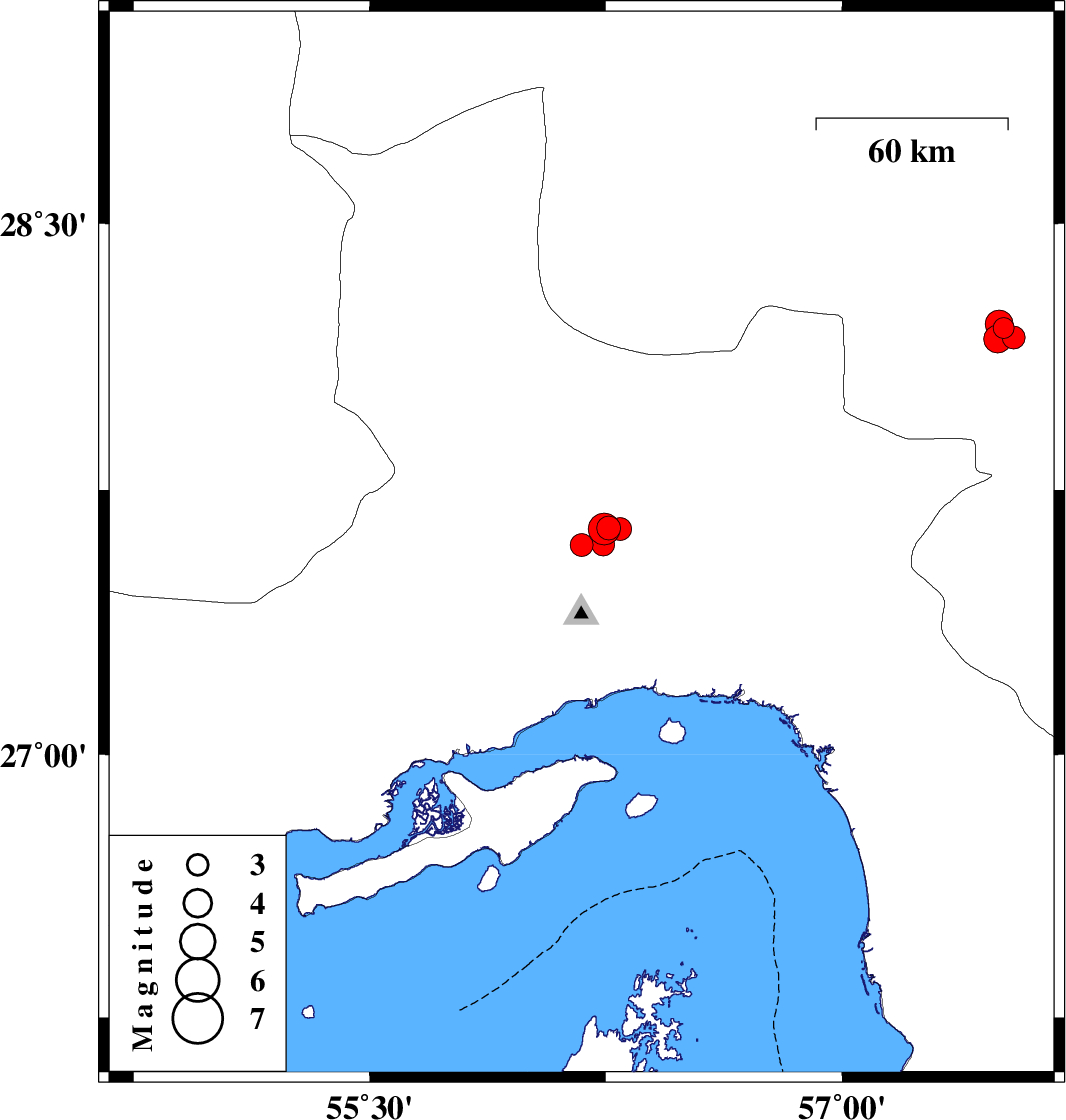 | 2021/12/16 | 21:24:41.6 | 00:54:41.6 | 27.596 | 56.242 | 12 | ML:3.2 | Hormozgan Province, 46 km North of Bandar-e abbas | ||