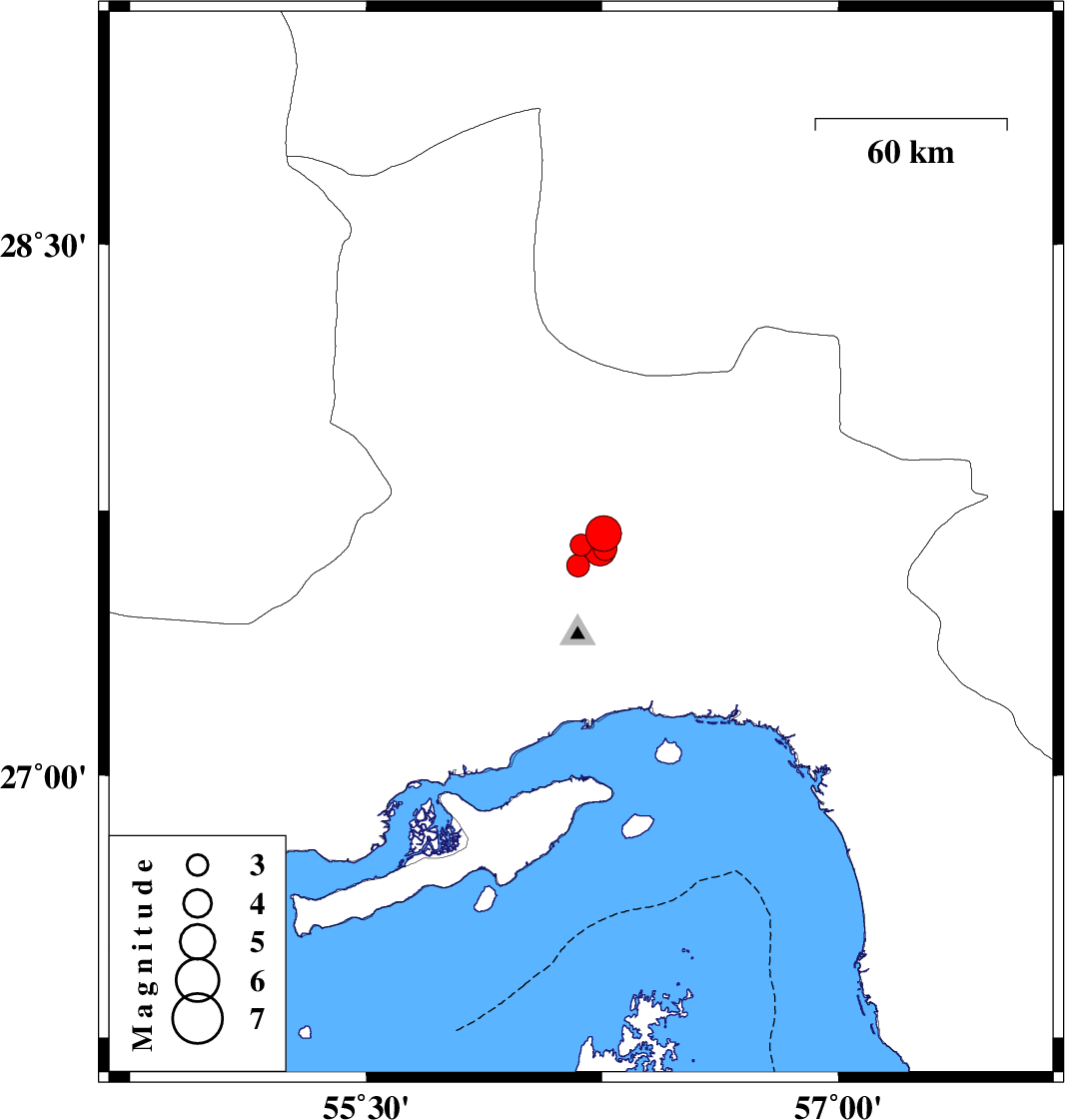 | 2021/12/27 | 07:31:55.4 | 11:01:55.4 | 27.685 | 56.255 | 8 | ML:5.1 | Hormozgan Province, 56 km North of Bandar-e abbas | ||