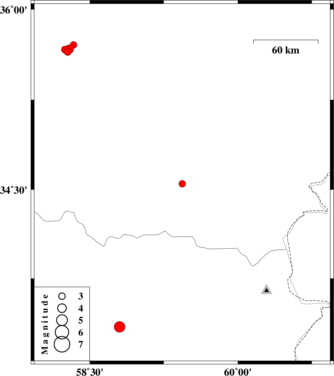 | 2021/12/23 | 15:55:29.8 | 19:25:29.8 | 35.668 | 58.248 | 12 | ML:3.3 | Khorasan(center) Province, 52 km North-West of Kashmar | ||