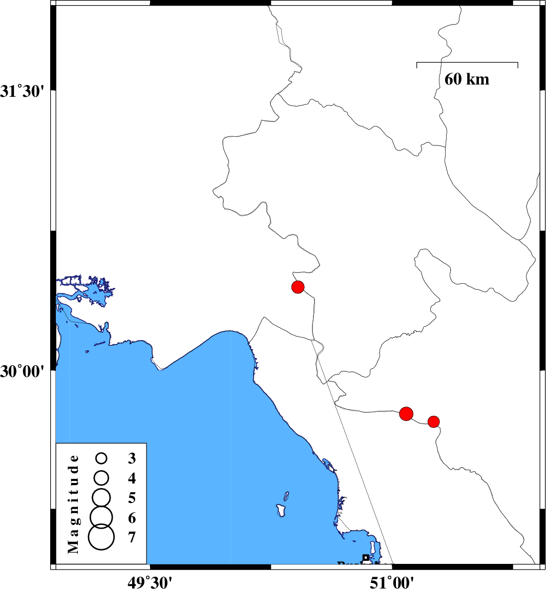 | 2021/12/22 | 00:06:23.2 | 03:36:23.2 | 29.722 | 51.258 | 12 | ML:3.2 | Fars Province, 40 km North-West of Kazerun |