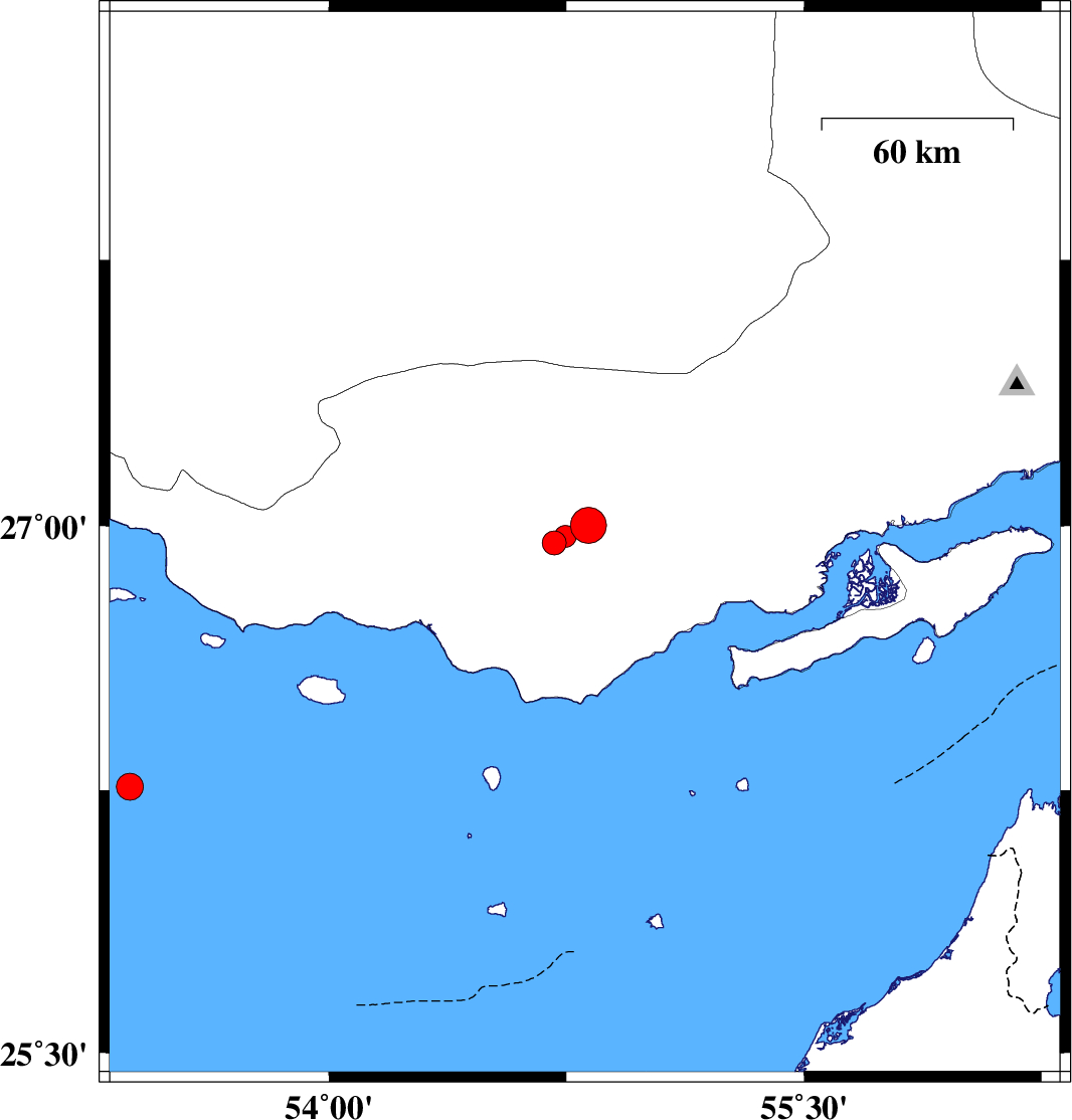 | 2021/12/28 | 04:39:08.5 | 08:09:08.5 | 27.635 | 56.148 | 12 | ML:3.4 | Hormozgan Province, 52 km North-West of Bandar-e abbas | ||