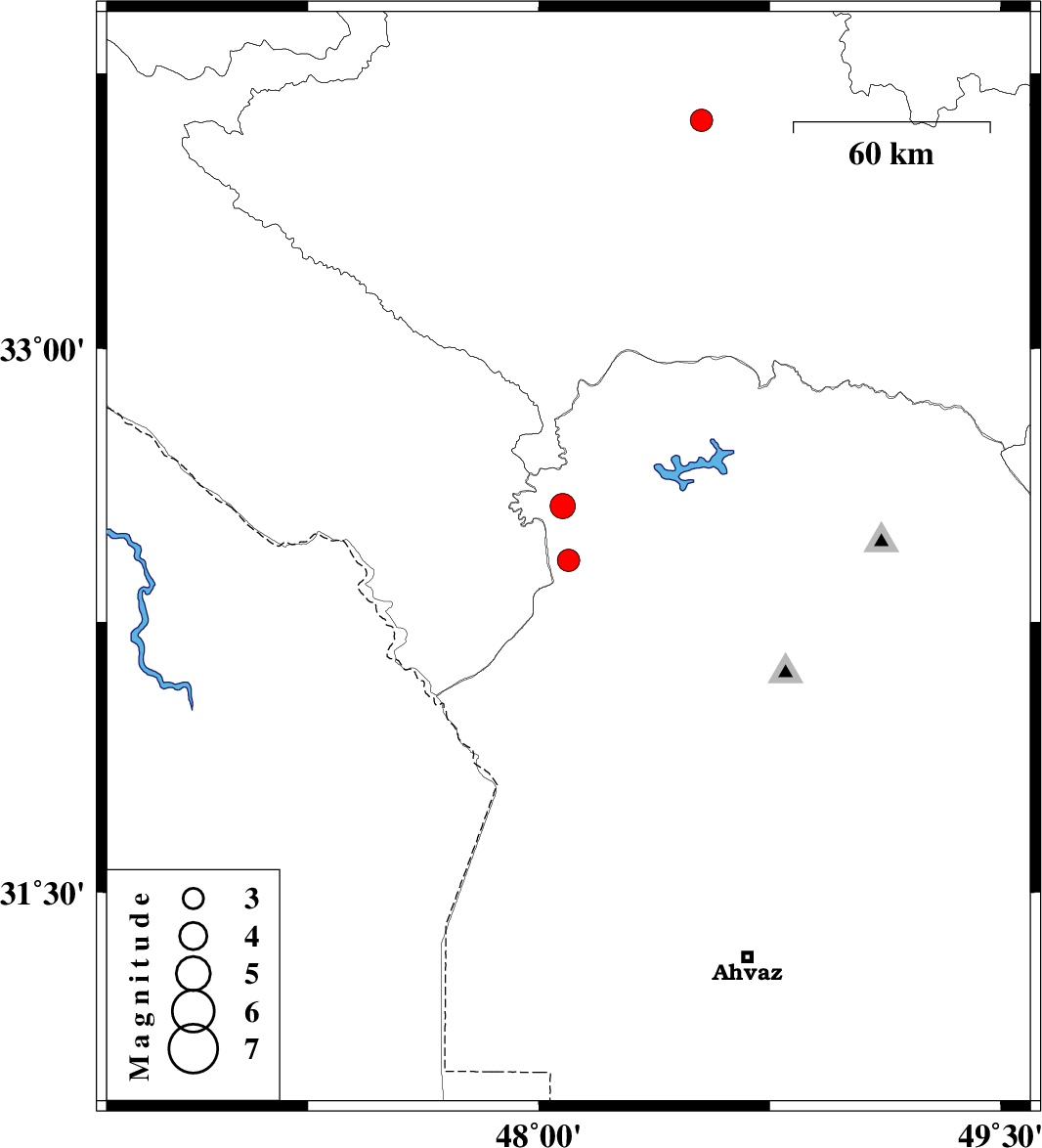 | 2022/01/05 | 00:48:43.5 | 04:18:43.5 | 32.419 | 48.096 | 12 | ML:3.3 | Khoozestan Province, 24 km -West of Andimeshk | ||