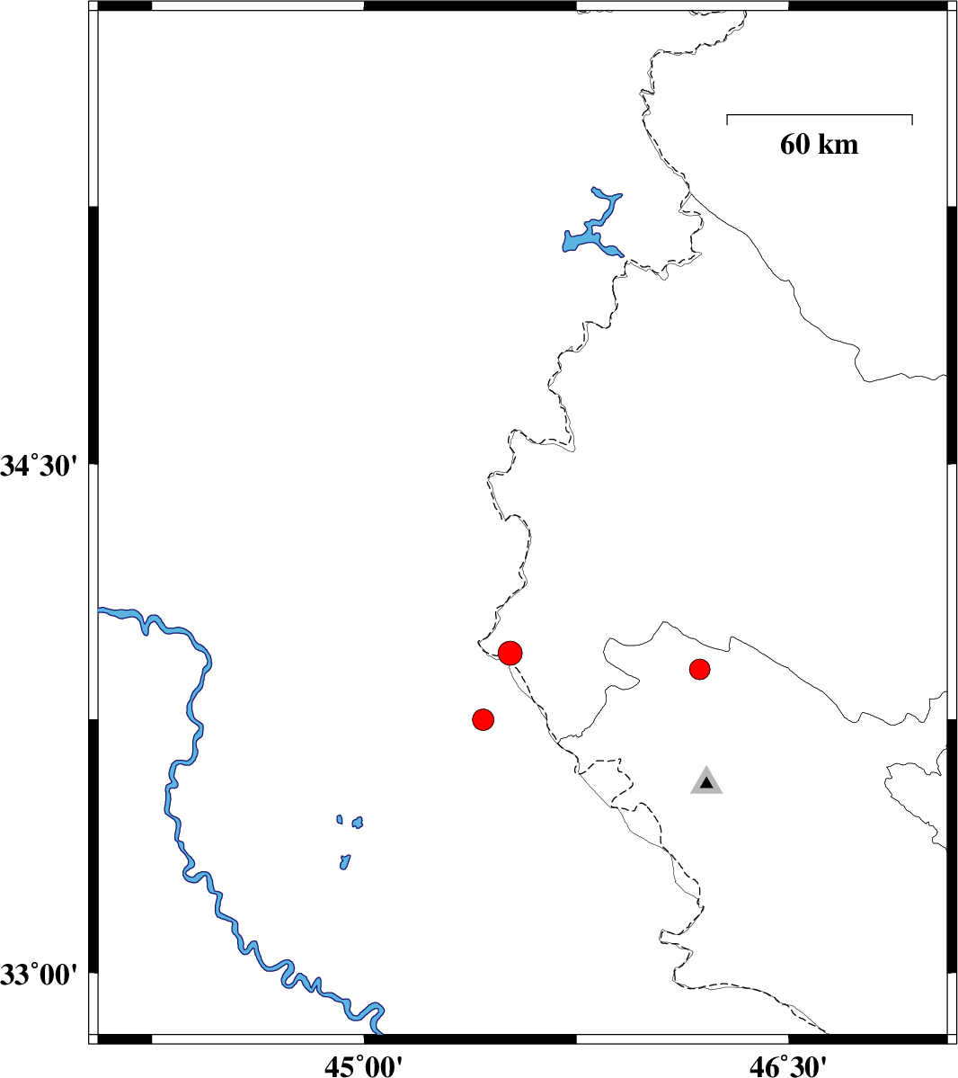 | 2022/01/08 | 01:09:19.3 | 04:39:19.3 | 34.316 | 45.56 | 10 | ML:3.4 | Iraq, 22 km South of Qasr-E-Shirin | ||