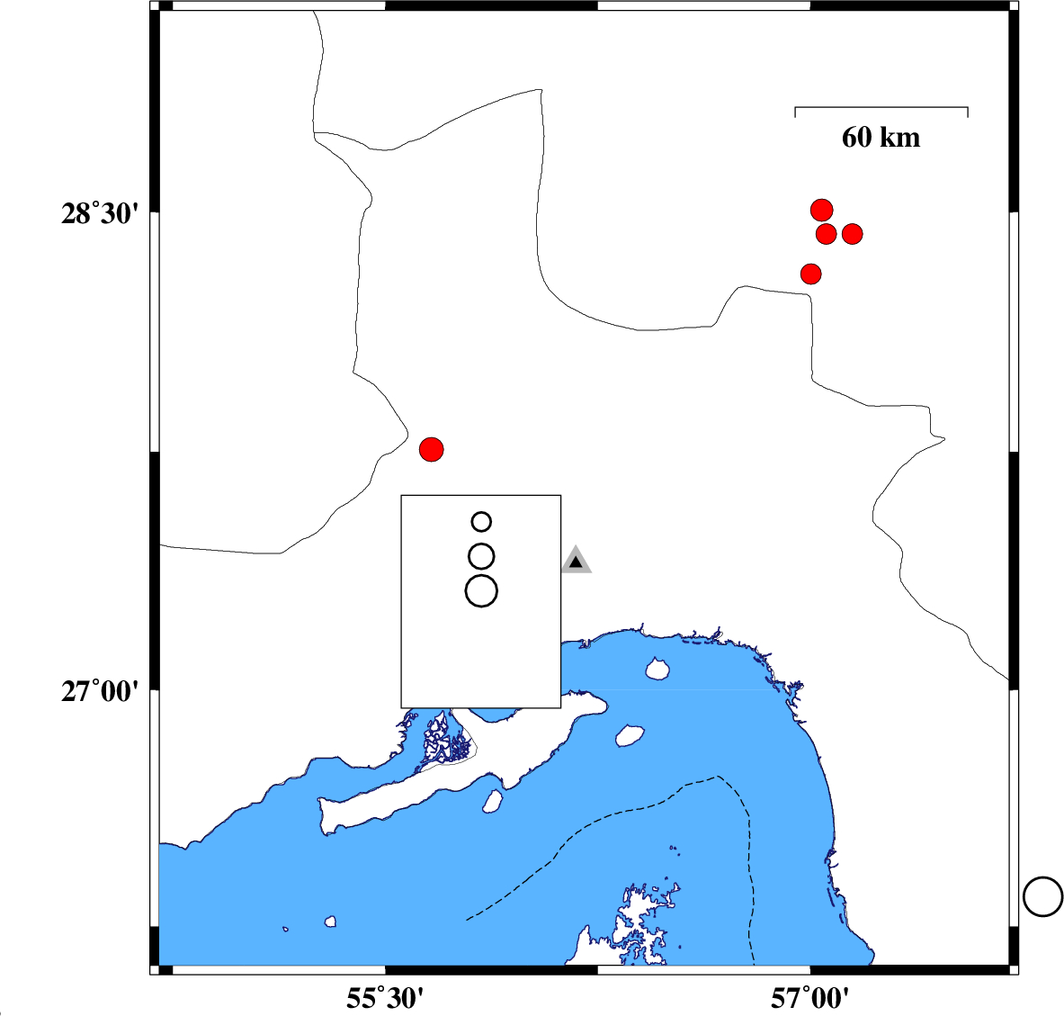 | 2022/01/08 | 04:45:37.8 | 08:15:37.8 | 27.627 | 56.294 | 12 | ML:3.3 | Hormozgan Province, 49 km North of Bandar-e abbas | ||