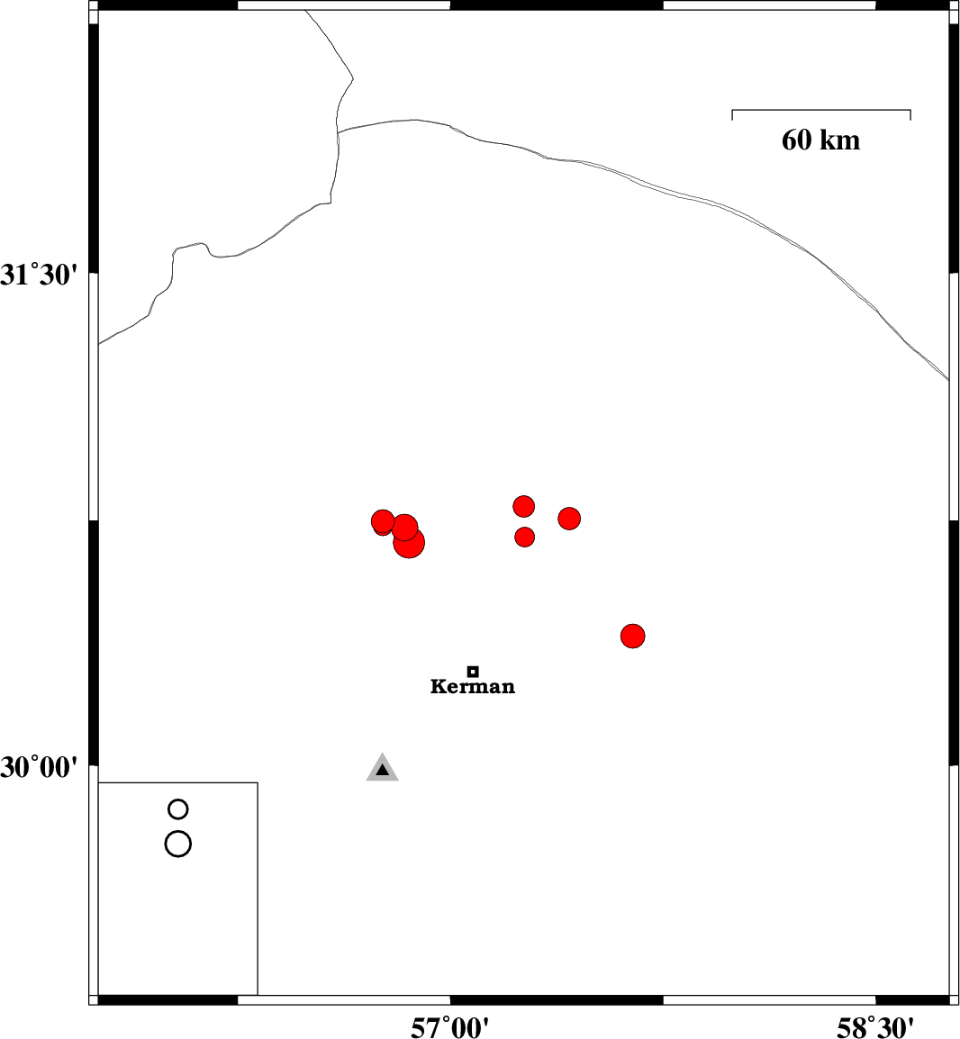 | 2021/12/29 | 07:24:23.1 | 10:54:23.1 | 30.396 | 57.643 | 12 | ML:3.8 | Kerman Province, 55 km North-East of Kerman | ||