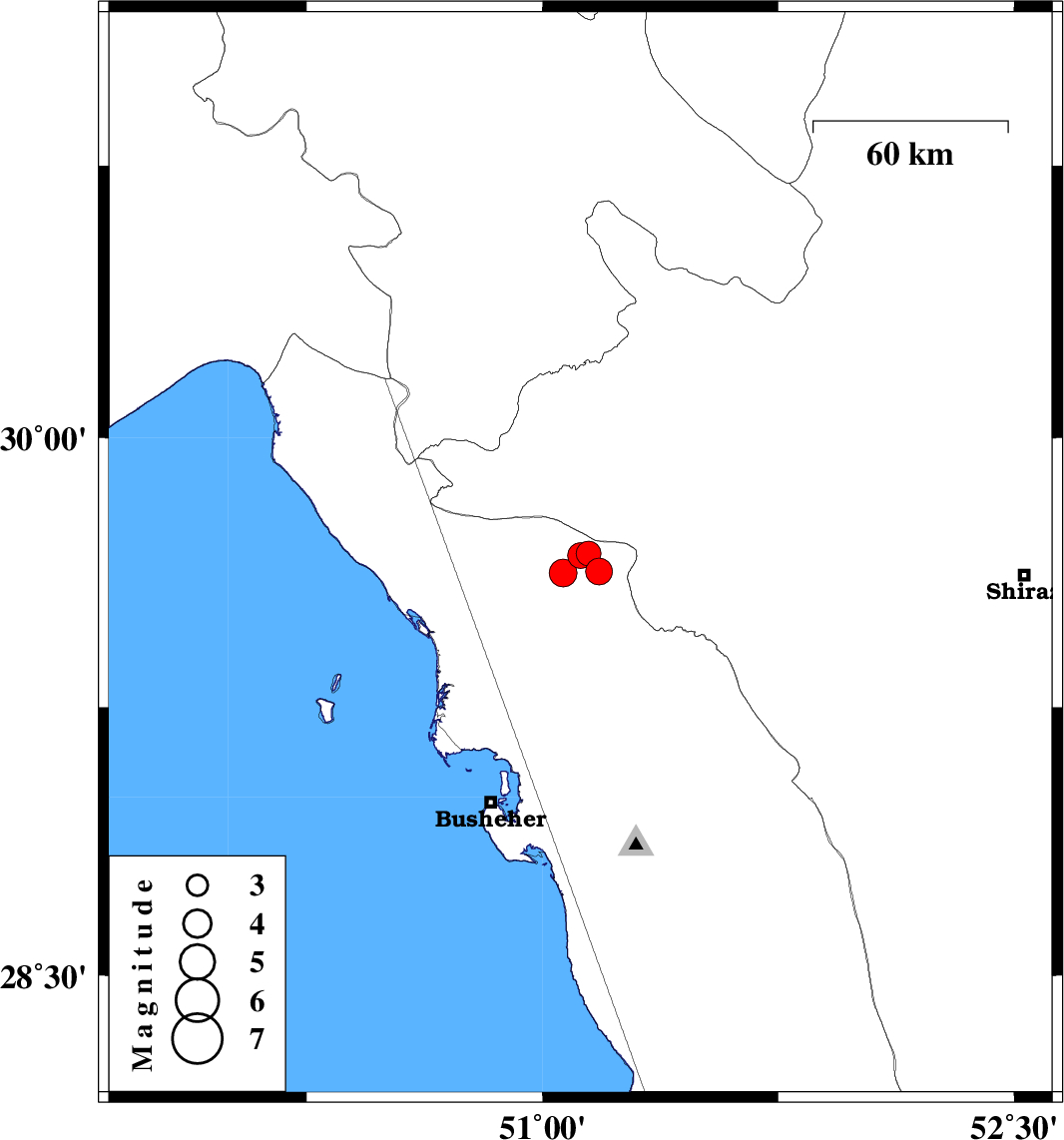 | 2022/01/10 | 18:07:36.2 | 21:37:36.2 | 29.673 | 51.121 | 12 | ML:3.6 | Bushehr Province, 46 km North of Borazjan | ||