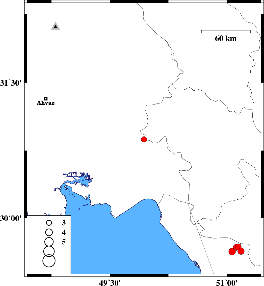 | 2022/01/13 | 12:32:47.4 | 16:02:47.4 | 30.873 | 49.937 | 12 | ML:3.2 | Khoozestan Province, 25 km North-East of Omidiyeh | ||