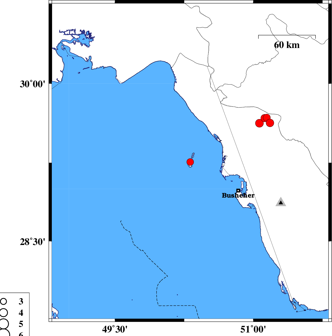 | 2022/01/10 | 18:07:36.2 | 21:37:36.2 | 29.673 | 51.121 | 12 | ML:3.6 | Bushehr Province, 46 km North of Borazjan | ||