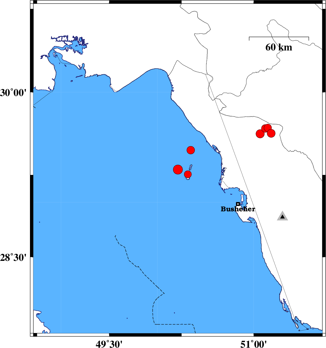 | 2022/01/15 | 14:20:57.9 | 17:50:57.9 | 29.476 | 50.346 | 12 | ML:3.7 | Persian Gulf, 20 km -West of Bandar-e genaveh | ||