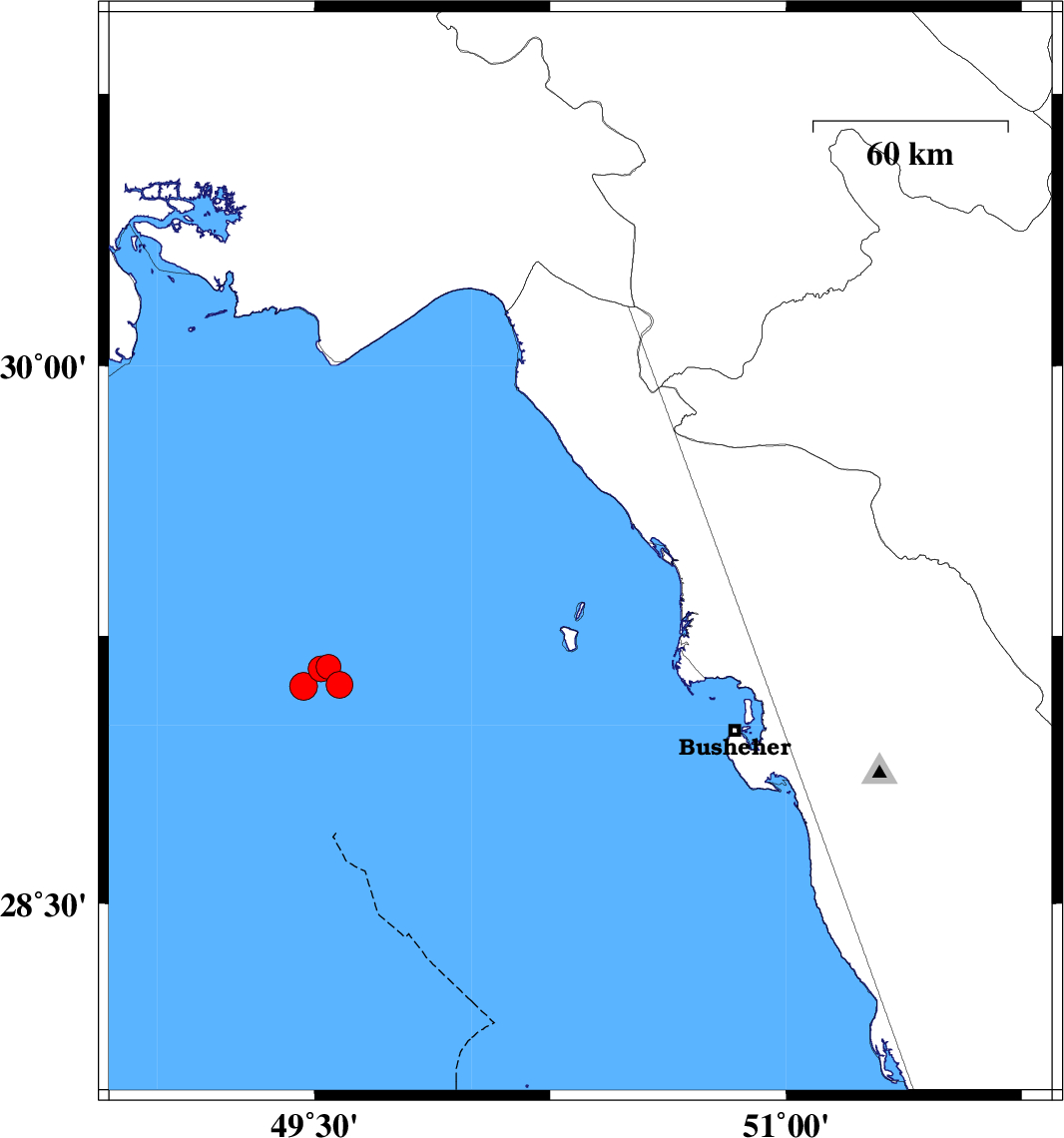 | 2022/01/15 | 14:20:57.9 | 17:50:57.9 | 29.476 | 50.346 | 12 | ML:3.7 | Persian Gulf, 20 km -West of Bandar-e genaveh | ||