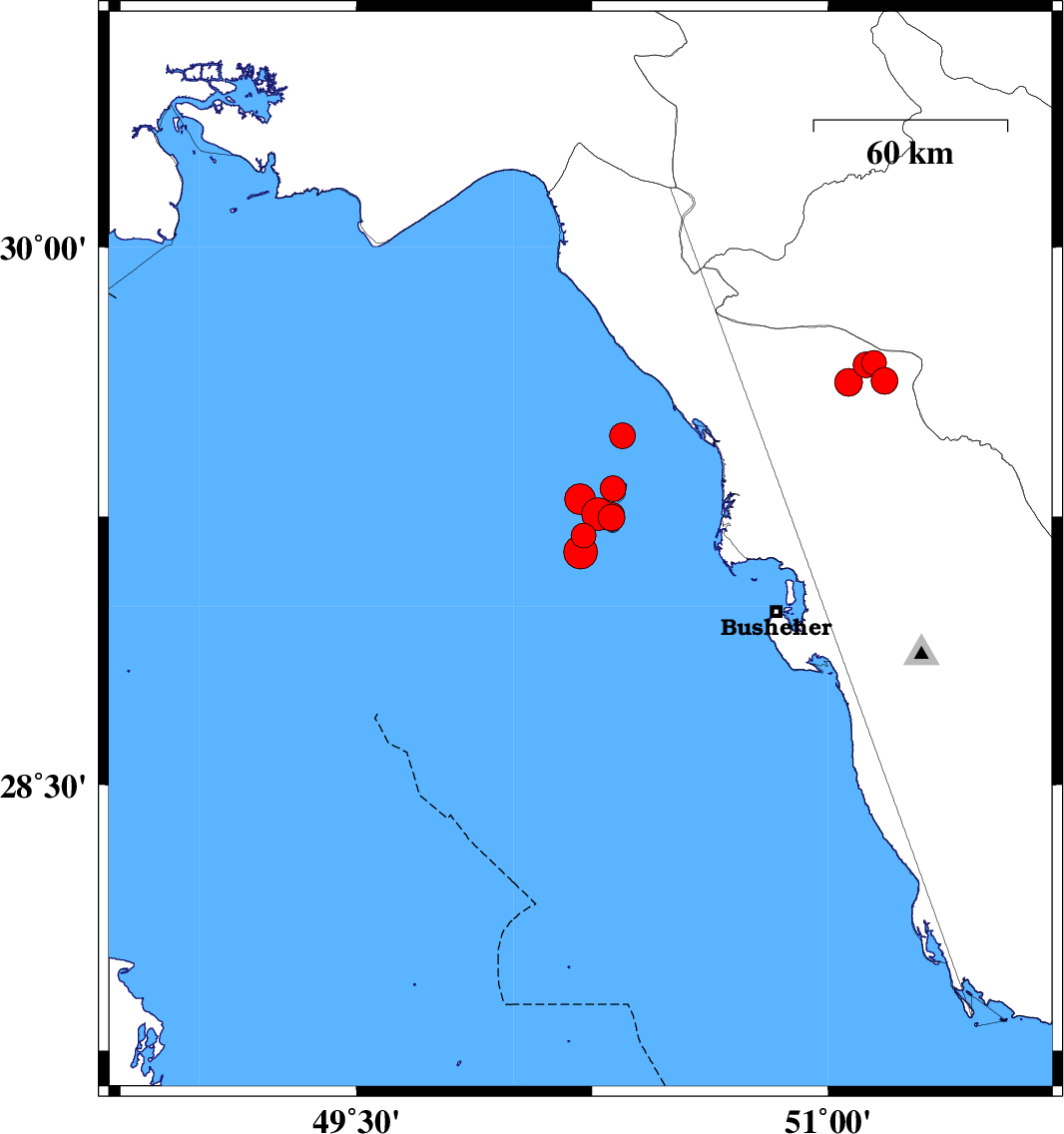 2022/01/10 18:13:38.5 21:43:38.5 29.67851.14616 ML:3.5 Bushehr Province, 47 km North of Borazjan