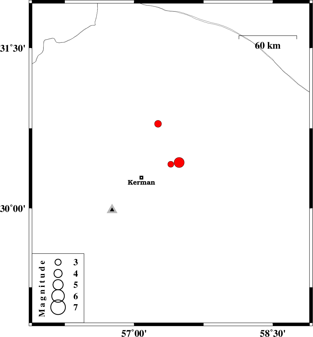 | 2022/01/16 | 07:52:15.2 | 11:22:15.2 | 30.413 | 57.396 | 12 | ML:3 | Kerman Province, 33 km North-East of Kerman | ||