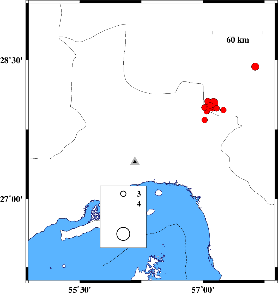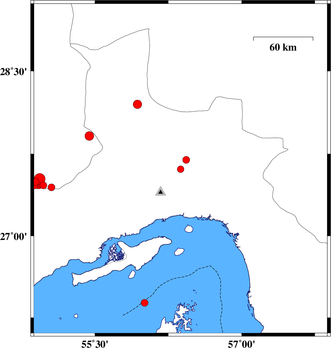 Hormozgan Province, 71 km South-East of Minab | |