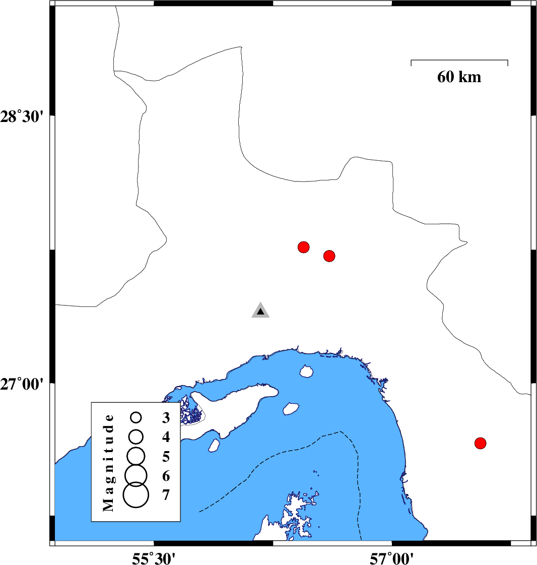 | 2022/01/20 | 15:23:08.3 | 18:53:08.3 | 27.608 | 56.376 | 12 | ML:3.3 | Hormozgan Province, 48 km North of Bandar-e abbas | ||