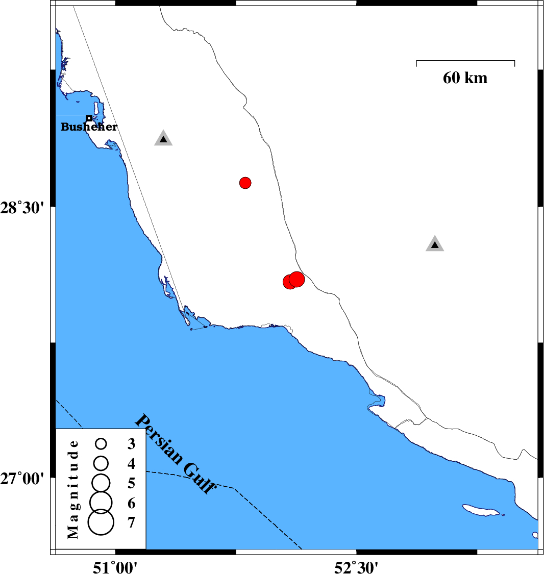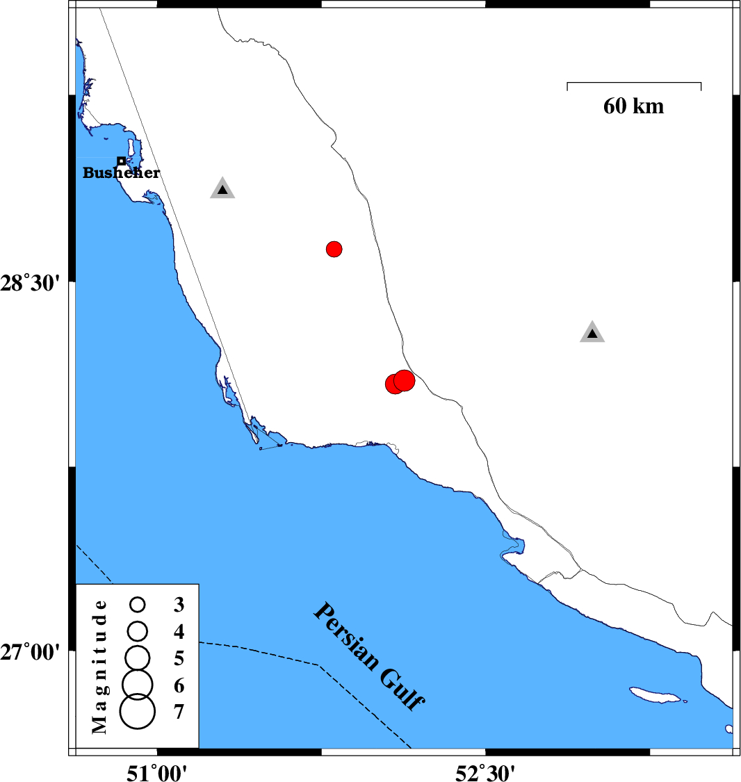 | 2021/12/27 | 06:52:30.3 | 10:22:30.3 | 28.631 | 51.807 | 12 | ML:3.2 | Bushehr Province, 43 km -East of Khormog |