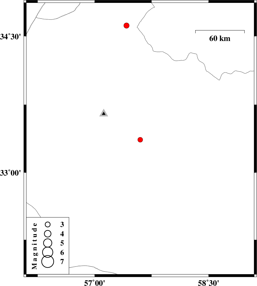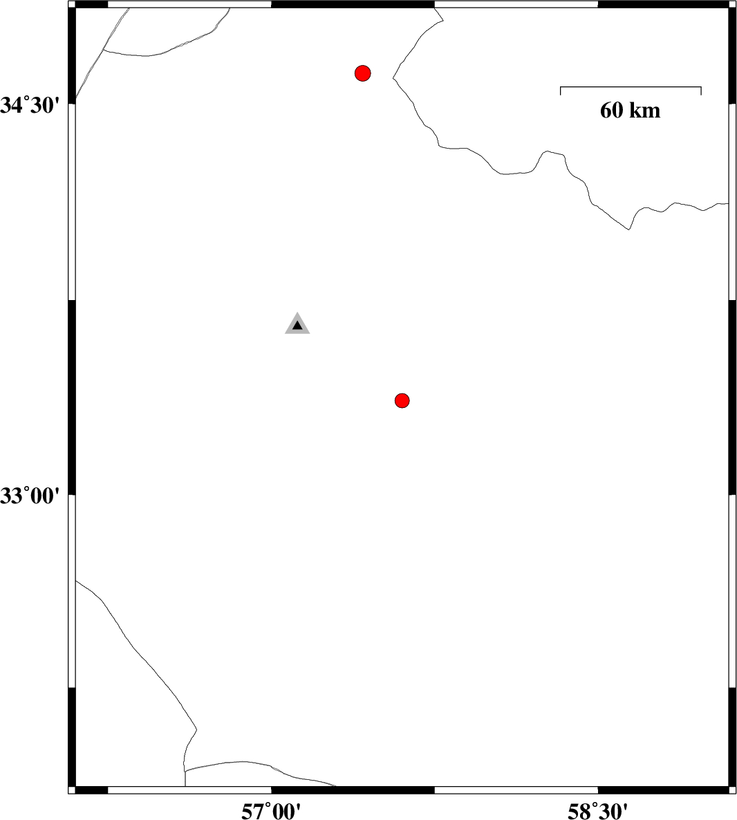 | 2022/01/23 | 16:09:19.2 | 19:39:19.2 | 33.364 | 57.6 | 10 | ML:3 | Yazd Province, 68 km South-East of Tabas | ||