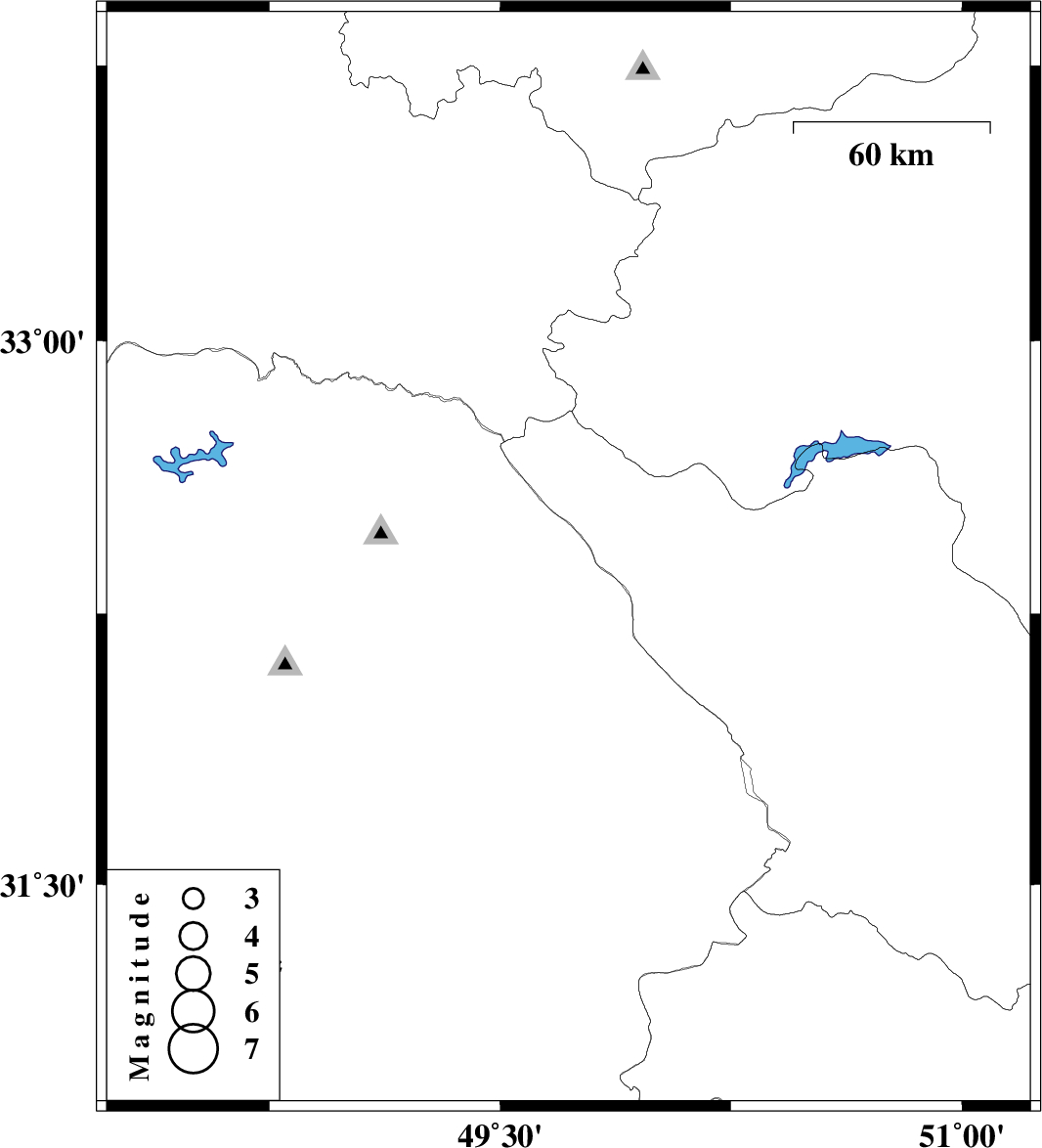 | 2022/01/24 | 01:14:53.8 | 04:44:53.8 | 32.397 | 49.722 | 12 | ML:3.4 | Khoozestan Province, 38 km -West of Chelgard |