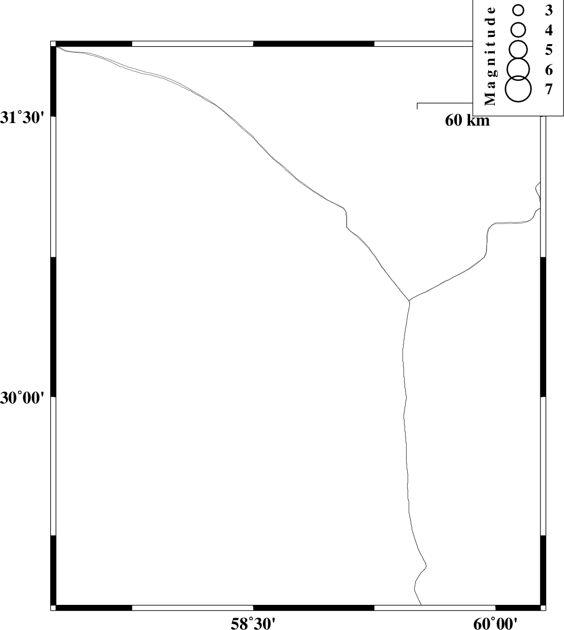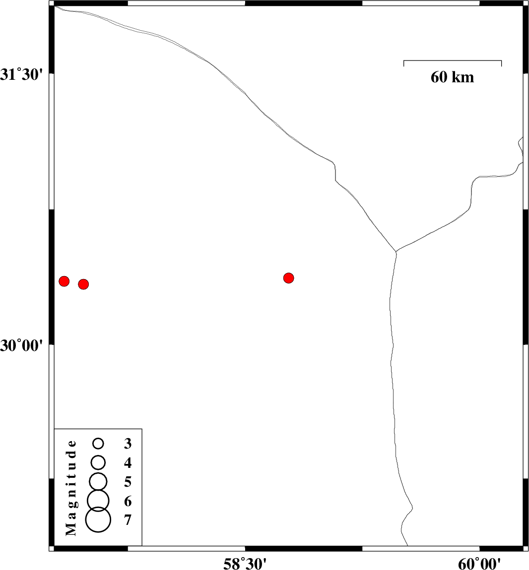 | 2022/01/31 | 01:33:57.8 | 05:03:57.8 | 30.37 | 58.778 | 12 | ML:3 | Kerman Province, 146 km North-East of Bam | ||