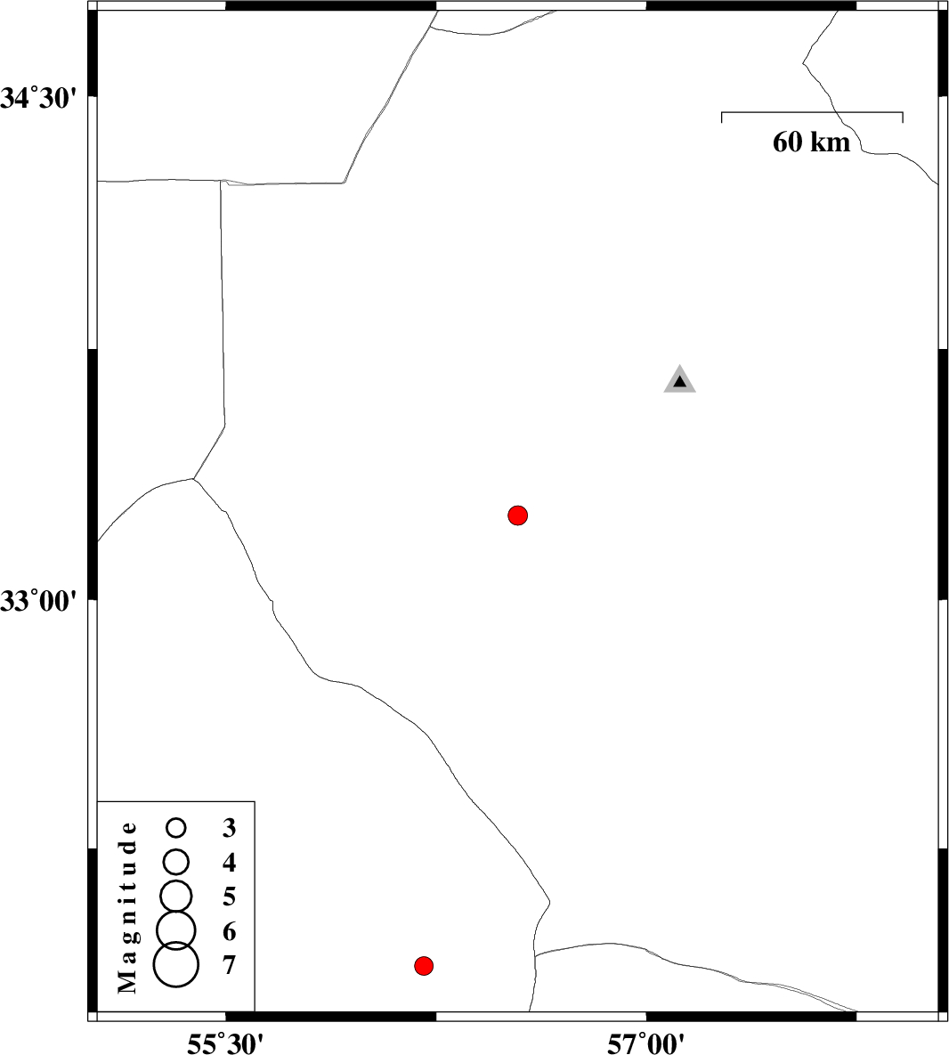 | 2022/01/28 | 01:14:10.1 | 04:44:10.1 | 31.892 | 56.206 | 10 | ML:3 | Yazd Province, 83 km North-East of Bafq |