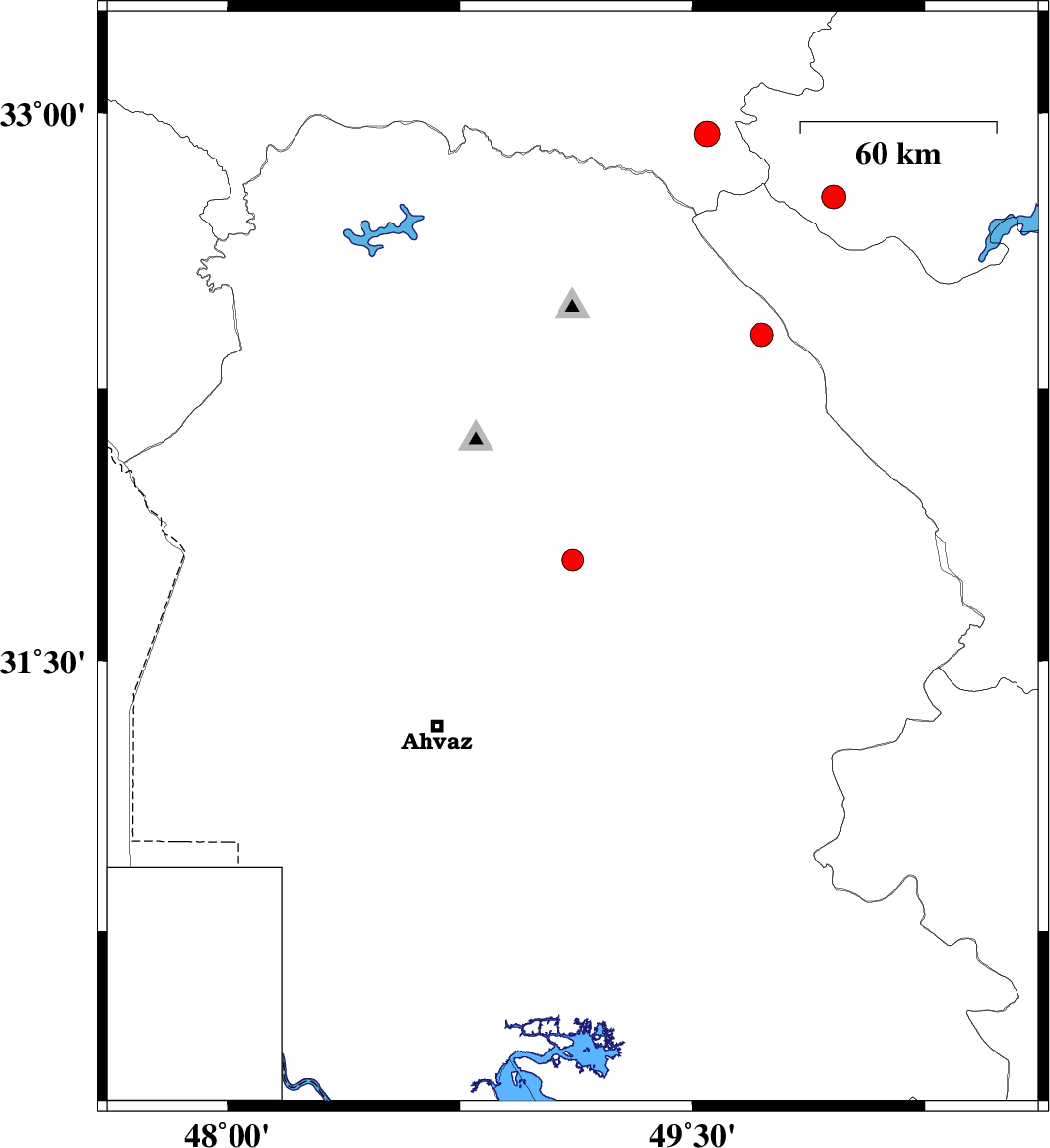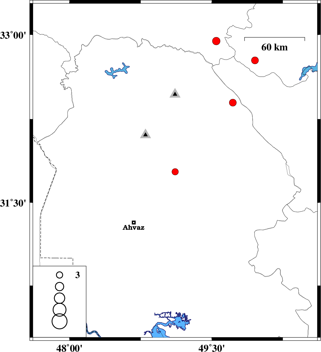 | 2022/01/24 | 01:14:53.8 | 04:44:53.8 | 32.397 | 49.722 | 12 | ML:3.4 | Khoozestan Province, 38 km -West of Chelgard |
