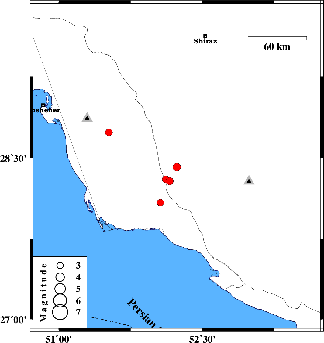 | 2022/02/20 | 06:50:58.5 | 10:20:58.5 | 28.735 | 51.524 | 10 | ML:3.4 | Bushehr Province, 18 km -East of Khormog |