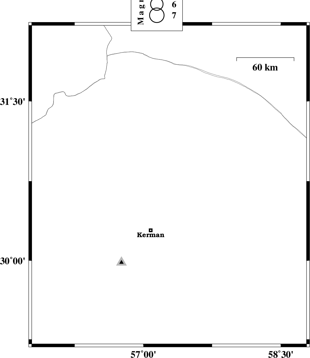 | 2022/03/01 | 00:39:59.3 | 04:09:59.3 | 30.707 | 57.281 | 12 | ML:3.2 | Kerman Province, 50 km North-East of Kerman | ||