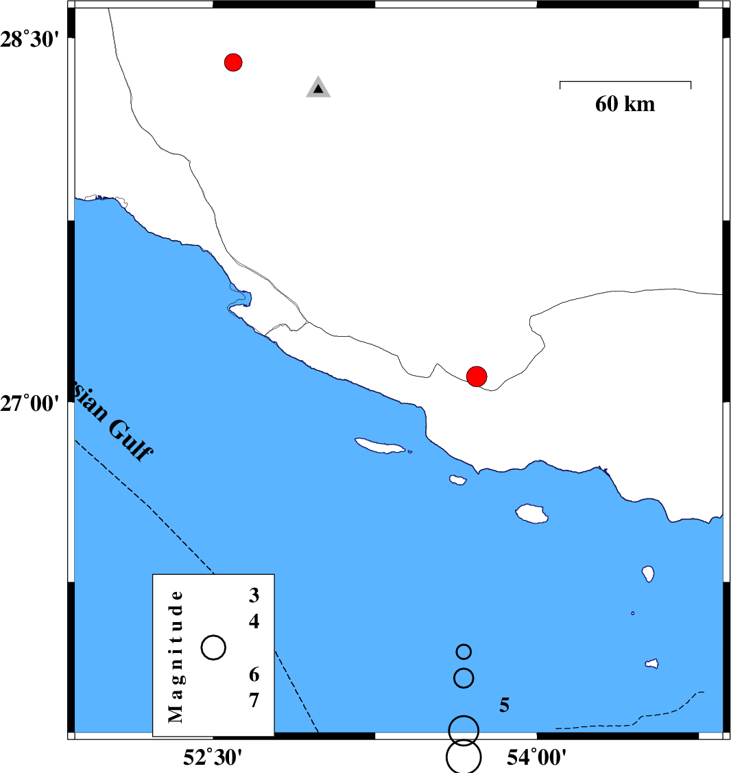 | 2022/03/04 | 10:46:13.9 | 14:16:13.9 | 27.122 | 53.36 | 12 | ML:4.3 | Hormozgan Province, 30 km South-East of Lamerd | ||