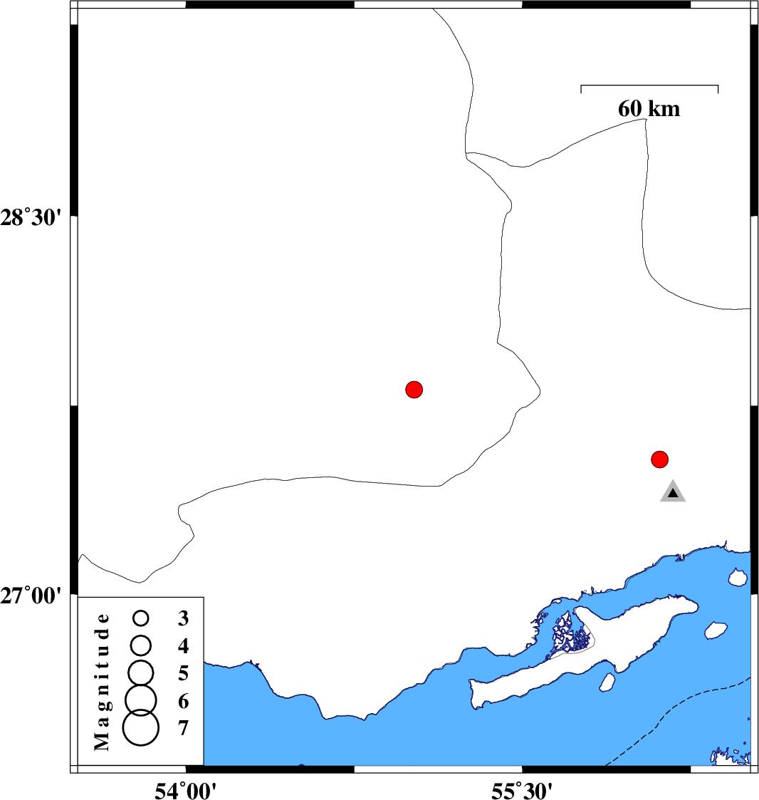 | 2022/02/28 | 03:41:30.1 | 07:11:30.1 | 27.537 | 56.112 | 12 | ML:3.4 | Hormozgan Province, 43 km North-West of Bandar-e abbas |