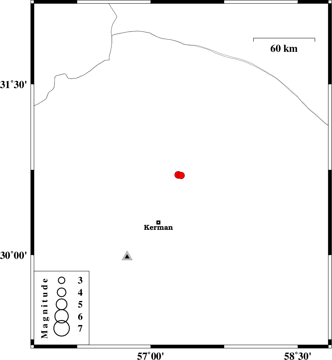 | 2022/03/01 | 00:39:59.3 | 04:09:59.3 | 30.707 | 57.281 | 12 | ML:3.2 | Kerman Province, 50 km North-East of Kerman |