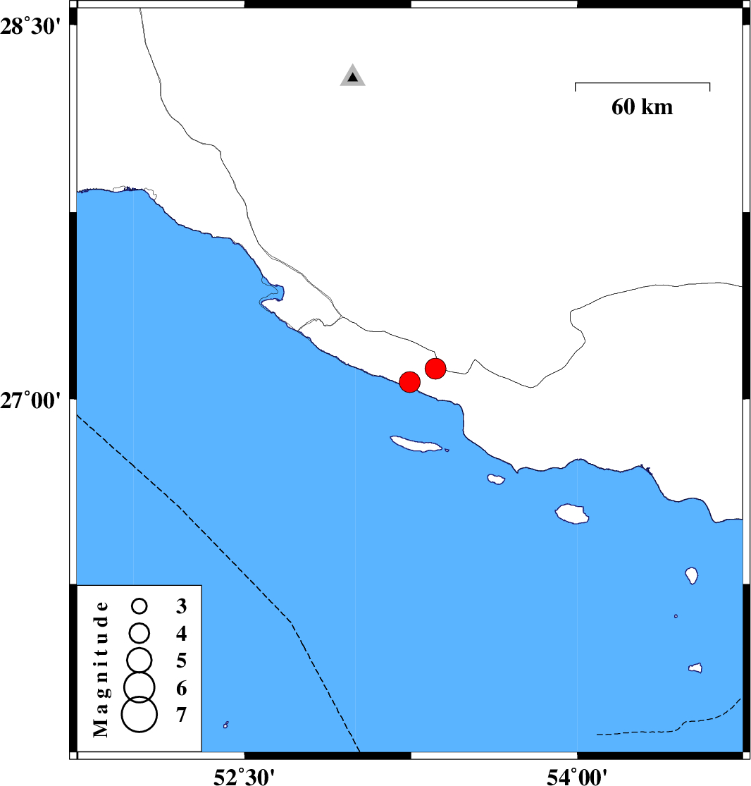 | 2022/03/04 | 10:46:13.9 | 14:16:13.9 | 27.122 | 53.36 | 12 | ML:4.3 | Hormozgan Province, 30 km South-East of Lamerd |