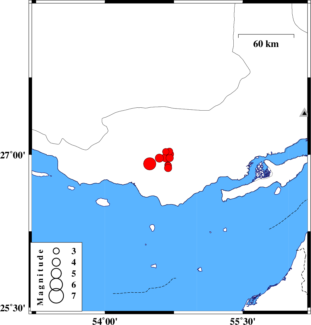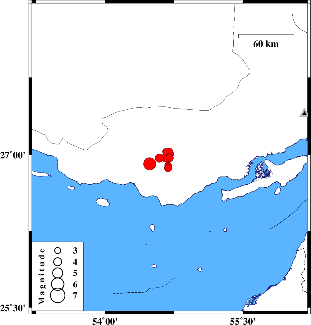 2022/03/17 02:45:04.9 06:15:04.9 27.00454.70827 ML:3.7 Hormozgan Province, 40 km South-East of Bastak