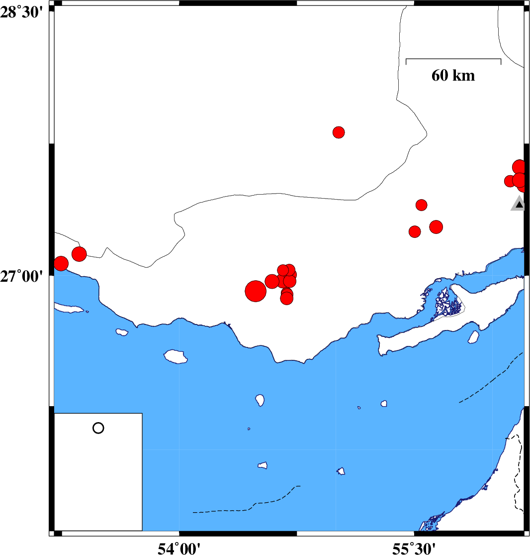 2022/03/17 14:25:31.9 17:55:31.9 27.02954.66217 ML:3.2 Hormozgan Province, 35 km South-East of Bastak