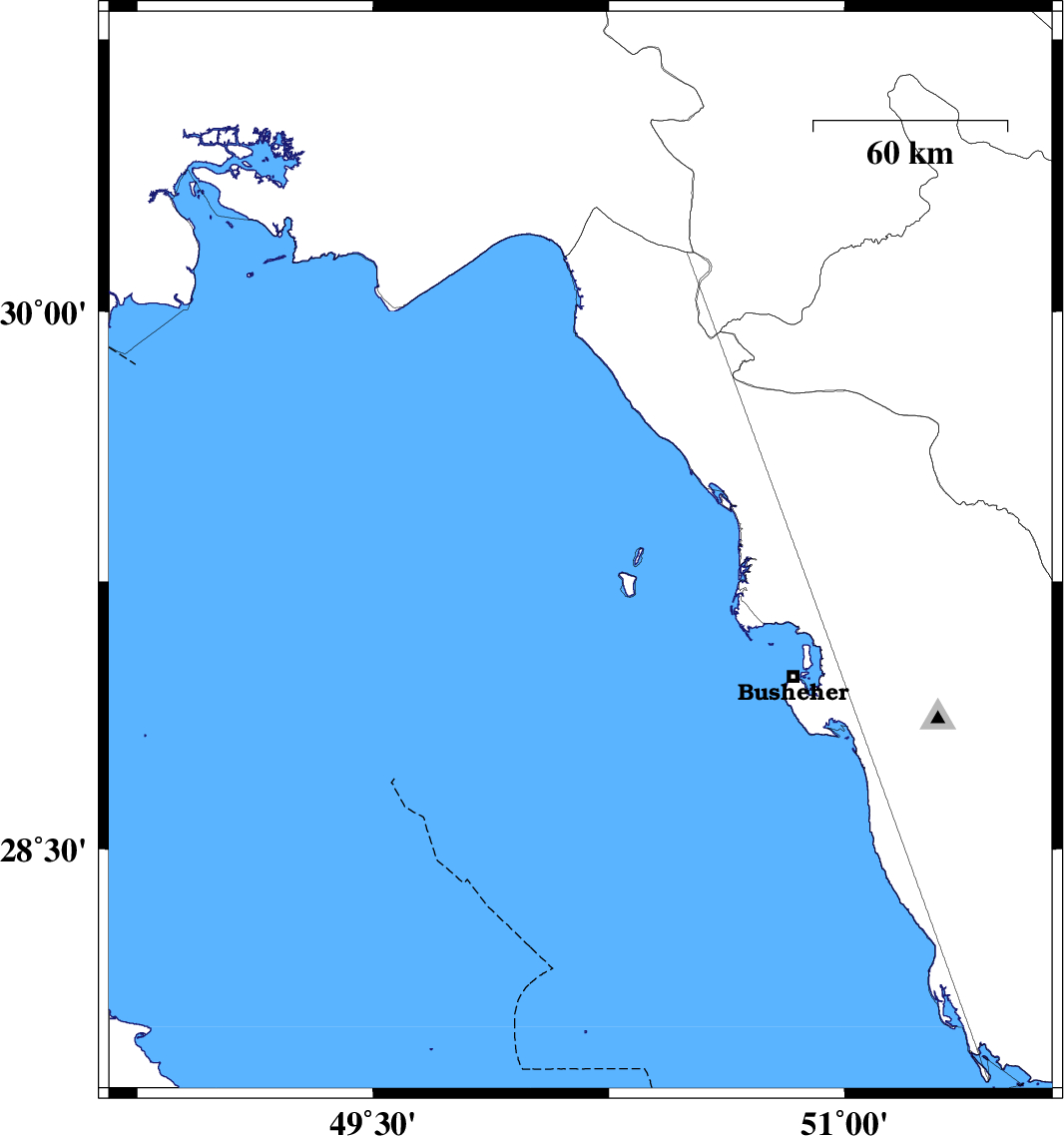 | 2022/04/11 | 08:43:44.6 | 13:13:44.6 | 29.328 | 50.16 | 9 | ML:3.3 | Persian Gulf, 44 km South-West of Bandar-e genaveh |