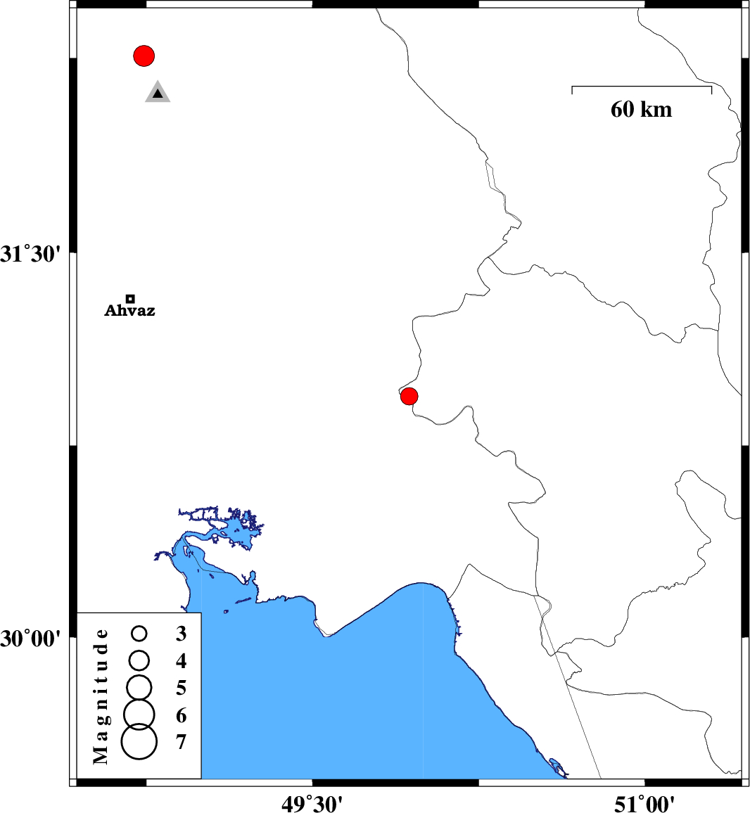 | 2022/04/12 | 05:28:51.3 | 09:58:51.3 | 30.942 | 49.936 | 15 | ML:3.5 | Kohkiluieh va boyerahmad Province, 30 km North-East of Omidiyeh | ||