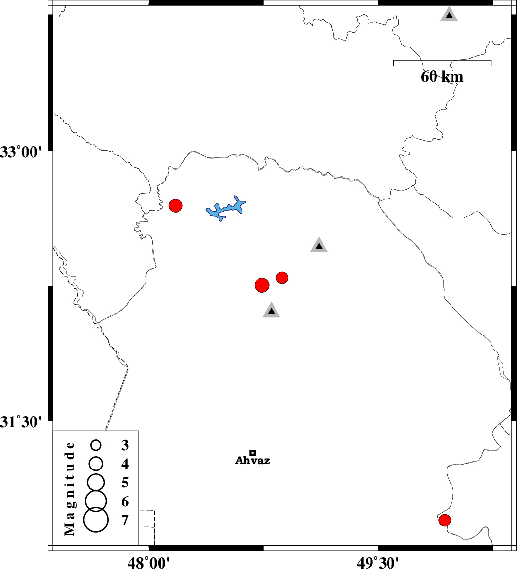 | 2022/03/31 | 08:21:53.8 | 12:51:53.8 | 32.698 | 48.175 | 27 | ML:4 | Khoozestan Province, 31 km North-West of Andimeshk |