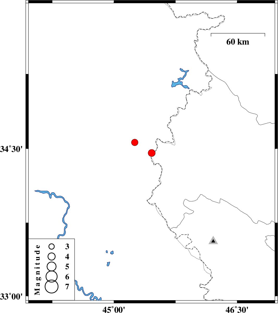 | 2022/04/16 | 19:00:24.5 | 23:30:24.5 | 34.456 | 45.46 | 12 | ML:3.9 | Kermanshah Province, 13 km -West of Qasr-E-Shirin | ||