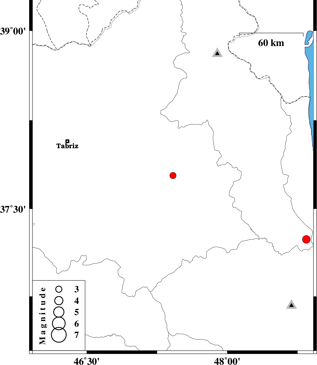 | 2022/04/21 | 15:08:05.3 | 19:38:05.3 | 37.782 | 47.42 | 11 | ML:3.1 | Azarbaijan Sharghi Province, 20 km South-West of Sarab | ||