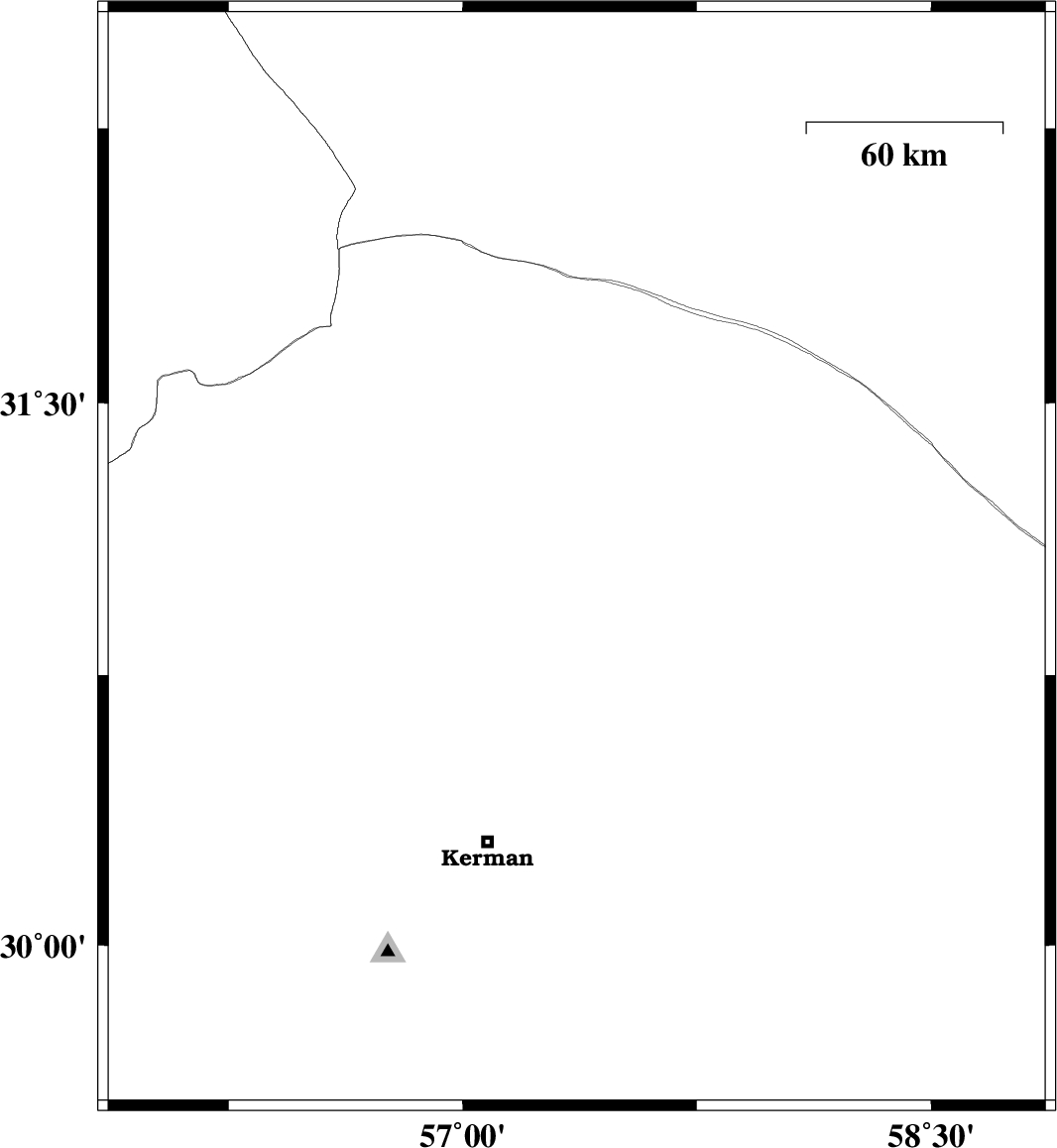 | 2022/04/25 | 17:41:59.8 | 22:11:59.8 | 31.068 | 57.365 | 12 | ML:3.1 | Kerman Province, 57 km South-East of Ravar |