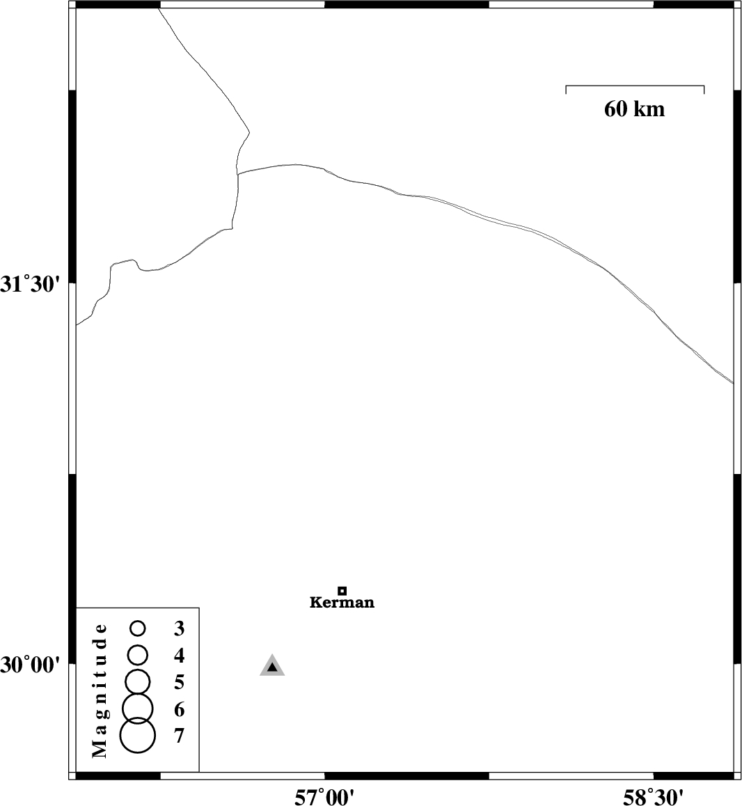| 2022/04/25 | 17:41:59.8 | 22:11:59.8 | 31.068 | 57.365 | 12 | ML:3.1 | Kerman Province, 57 km South-East of Ravar |