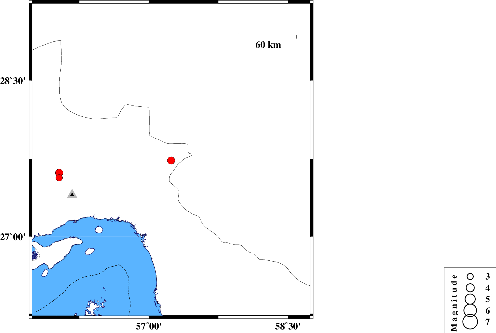 2022/04/27 | 03:03:09.6 | 07:33:09.6 | 27.566 | 56.032 | 12 | ML:3.3 | Hormozgan Province, 49 km North-West of Bandar-e abbas | ||
