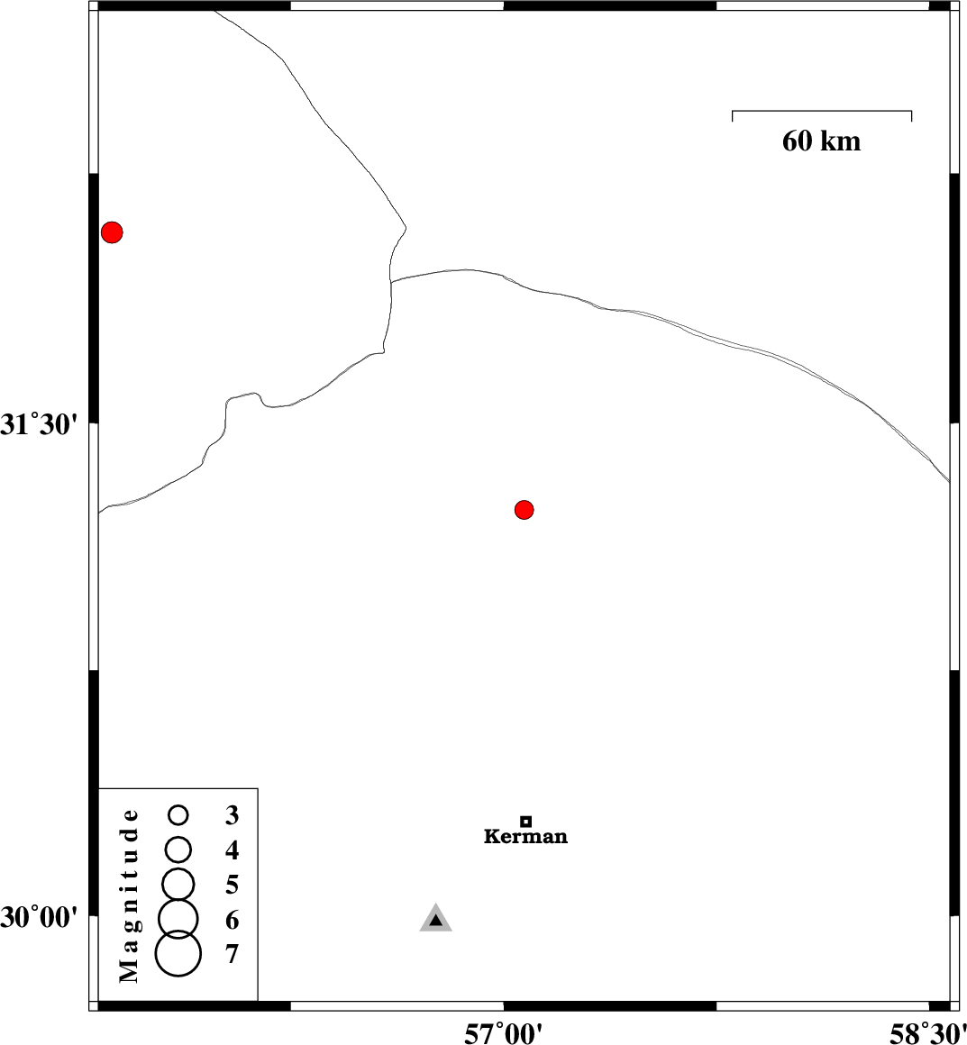 | 2022/05/11 | 13:49:26.6 | 18:19:26.6 | 31.237 | 57.072 | 12 | ML:3 | Kerman Province, 25 km -East of Ravar | ||