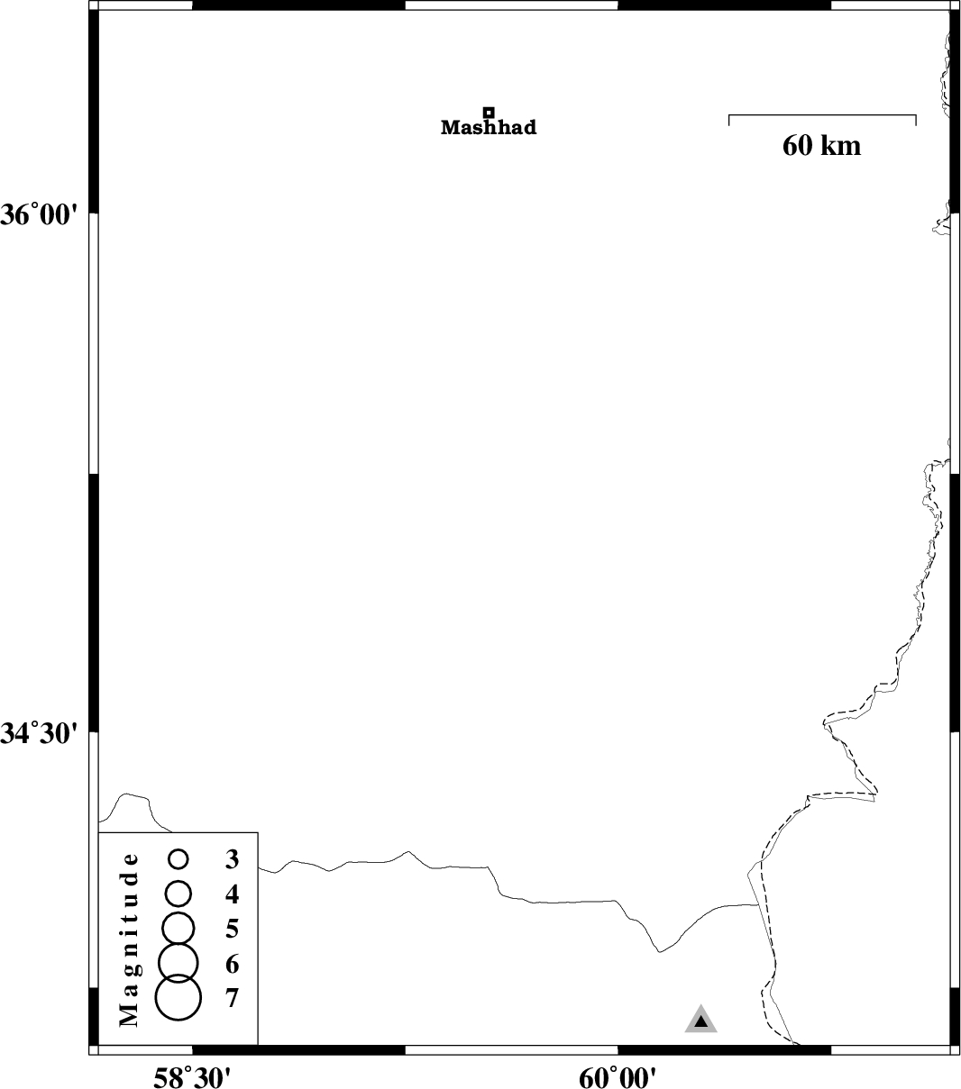 | 2022/05/12 | 06:54:22.8 | 11:24:22.8 | 35.08 | 59.669 | 12 | ML:2.6 | Khorasan(center) Province, 46 km South-East of Torbat-e heydariyeh |
