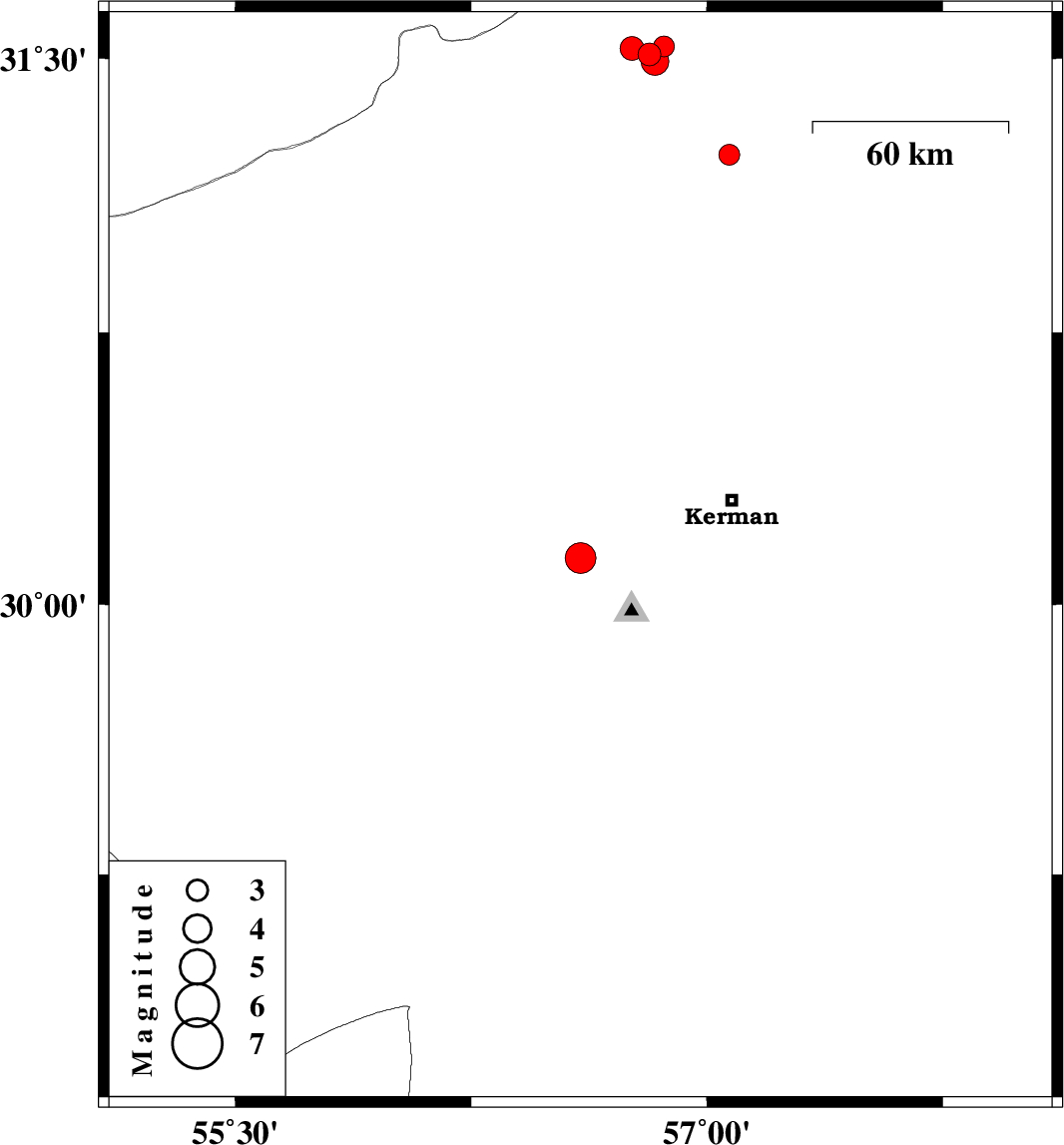 | 2022/05/17 | 10:27:06.4 | 14:57:06.4 | 31.532 | 56.863 | 12 | ML:3 | Kerman Province, 30 km North of Ravar | ||