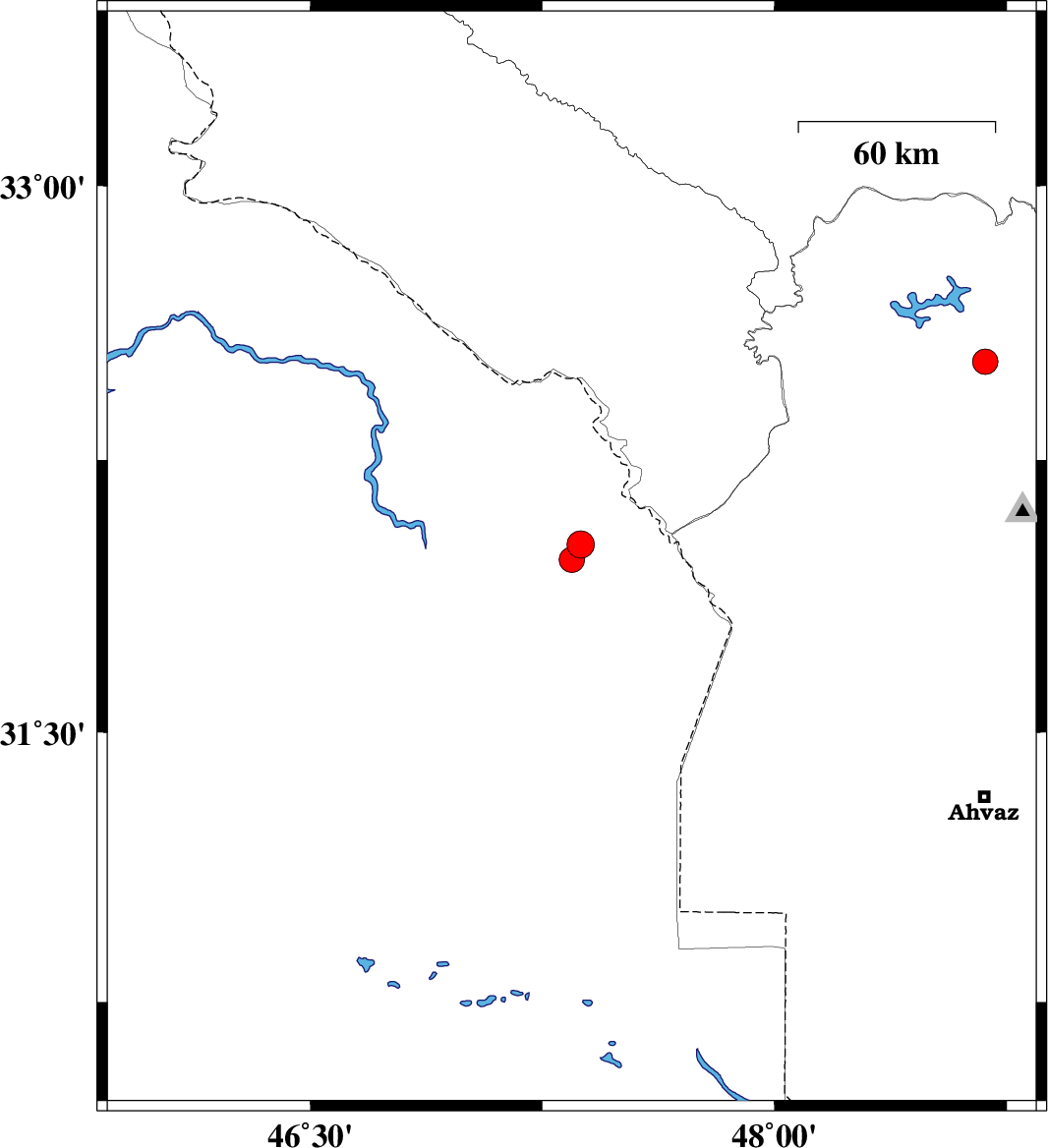 | 2022/05/17 | 19:02:01.0 | 23:32:01.0 | 31.975 | 47.345 | 12 | ML:3.7 | Iraq, 80 km South of Dehloran | ||