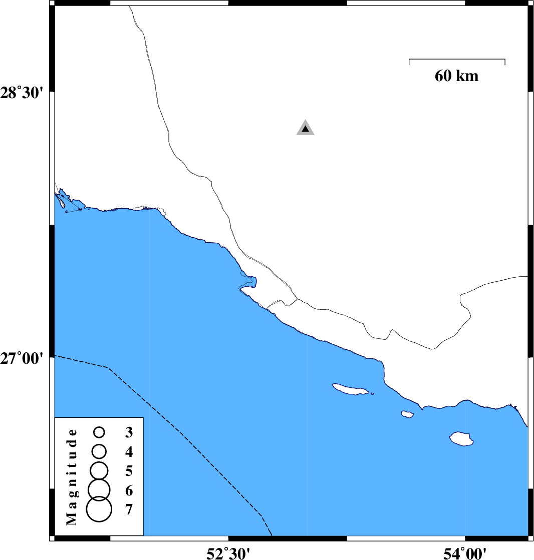 | 2022/05/17 | 03:23:47.9 | 07:53:47.9 | 27.481 | 52.898 | 8 | ML:3.4 | Fars Province, 7 km of Mehr |
