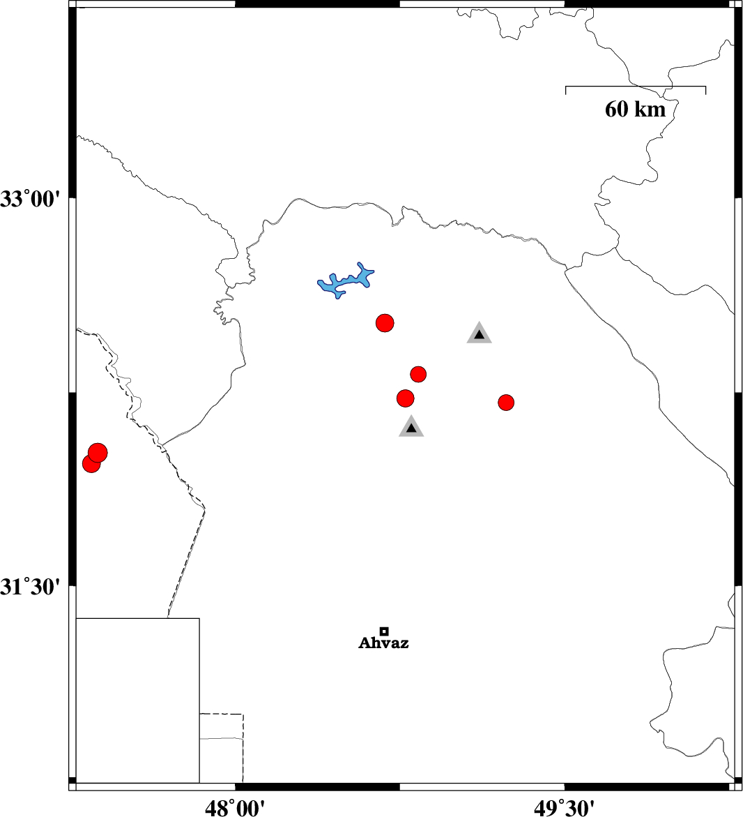 | 2022/05/17 | 19:02:01.0 | 23:32:01.0 | 31.975 | 47.345 | 12 | ML:3.7 | Iraq, 80 km South of Dehloran | ||