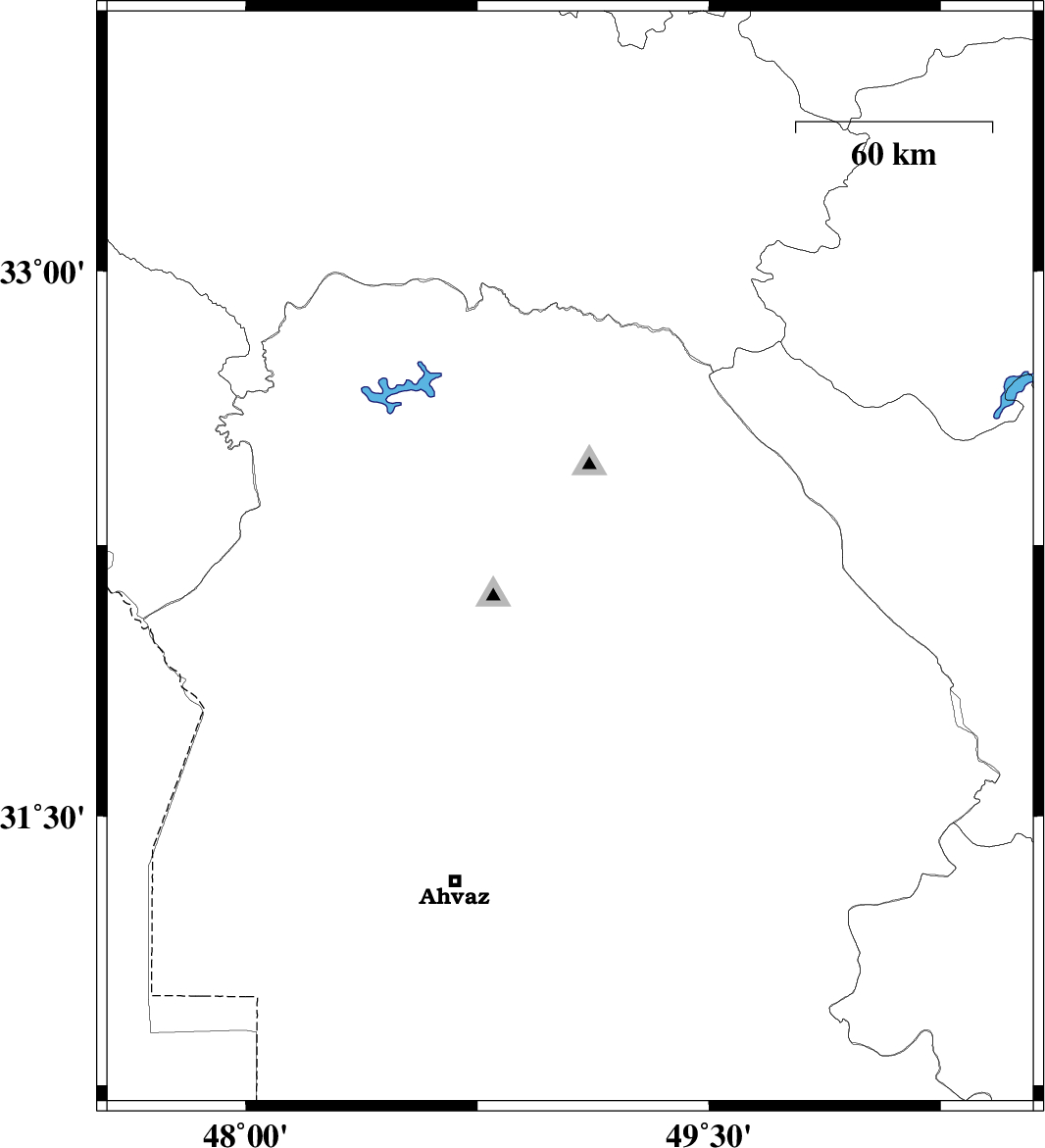 | 2022/05/23 | 10:17:04.6 | 14:47:04.6 | 32.208 | 49.05 | 12 | ML:3.7 | Khoozestan Province, 21 km South of Lali | ||