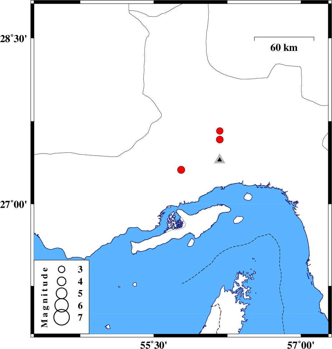 | 2022/05/25 | 05:41:16.6 | 10:11:16.6 | 27.585 | 56.173 | 6 | ML:3.3 | Hormozgan Province, 46 km North-West of Bandar-e abbas |