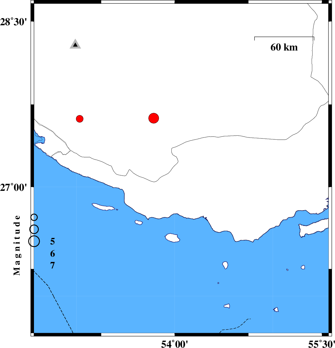 | 2022/05/29 | 10:23:16.0 | 14:53:16.0 | 27.155 | 53.312 | 12 | ML:3.3 | Hormozgan Province, 24 km South-East of Lamerd |